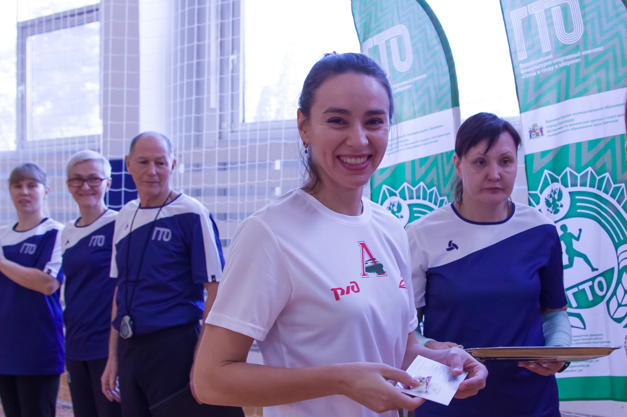 Второй этап городского фестиваля «Готов к труду и обороне» среди трудовых коллективов начался с приятного. Одной из участниц - представительнице команды РЖД-«Локомотив» Галине Поповой - вручили золотой знак ГТО.