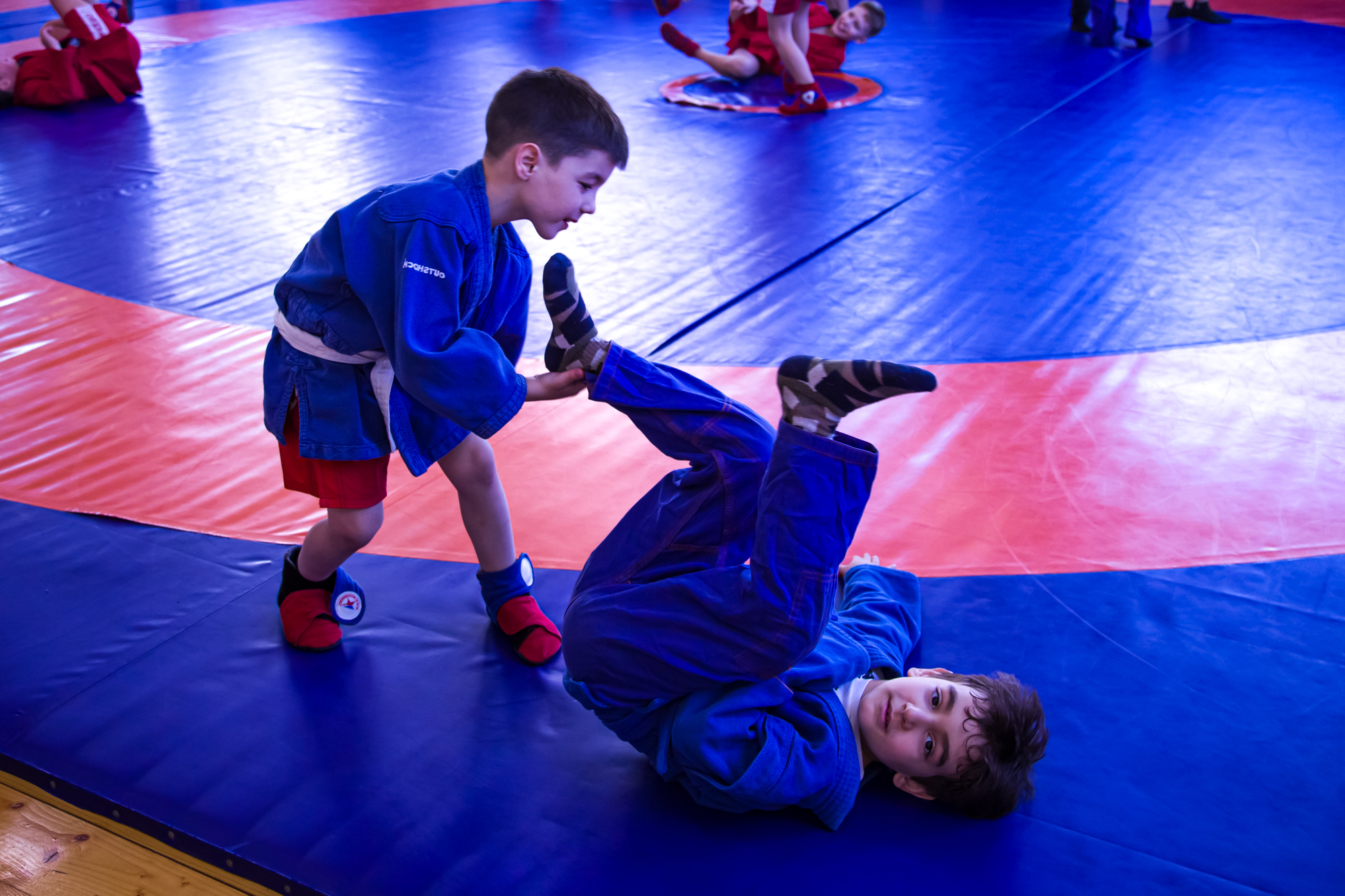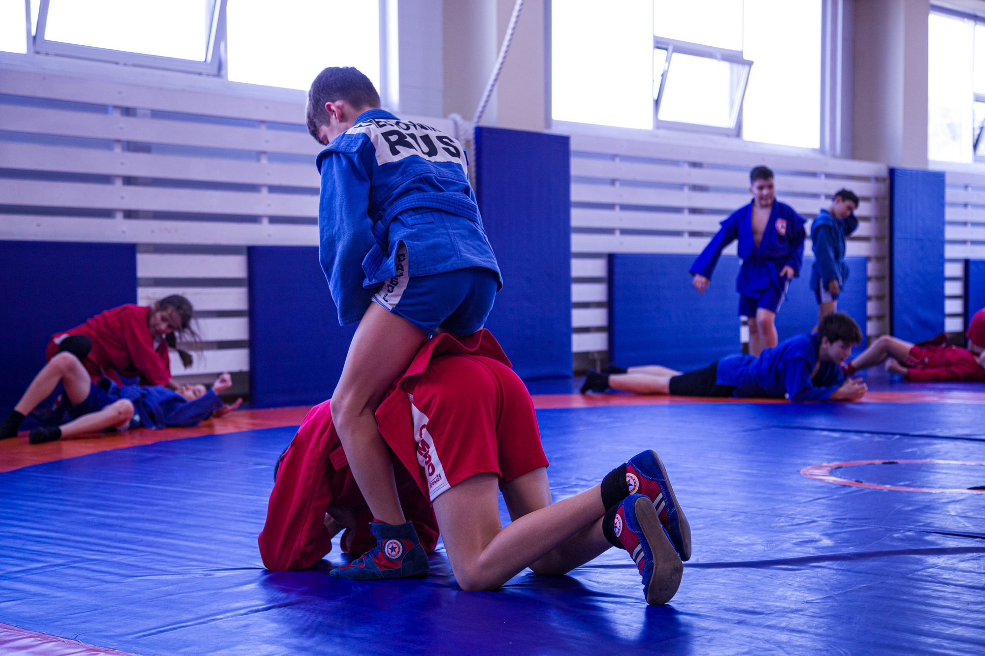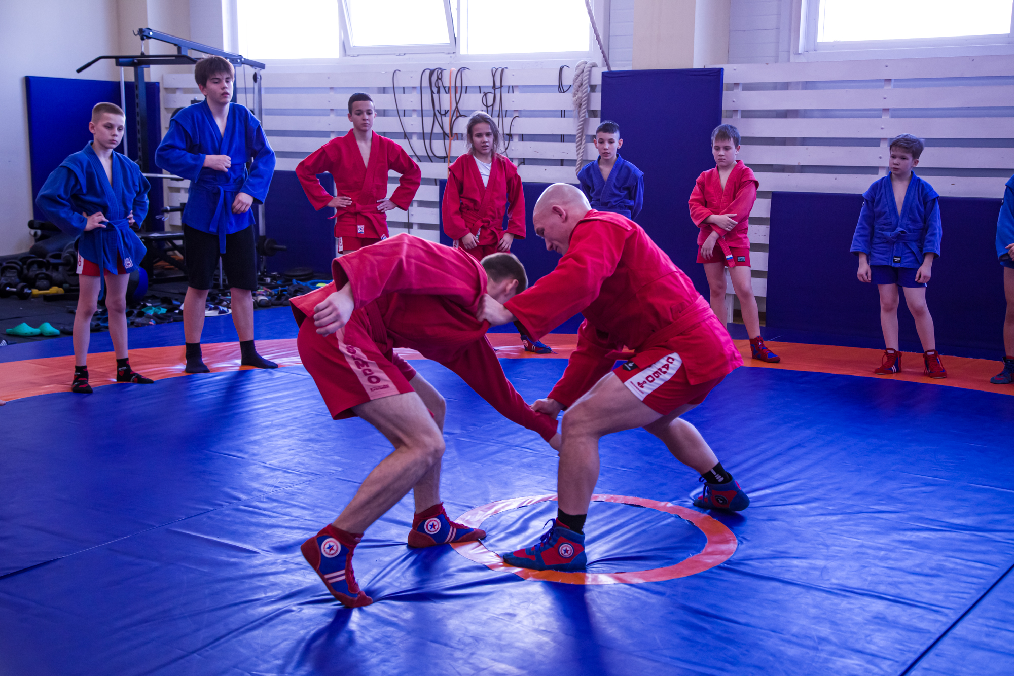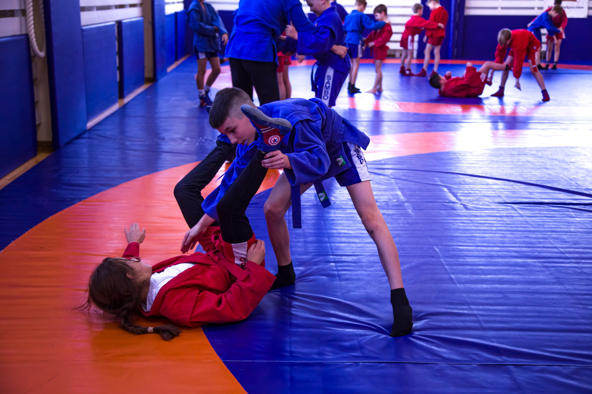 В нём поучаствовали ребята 7-14 лет. После обязательной разминки перешли к отработке приёмов. Действующий спортсмен и тренер Александр Дурыманов показал юным самбистам «выхват одной ноги», «выхват пятки» и «выхват двух ног» - одни из базовых приёмов самбо. Затем у каждой пары спортсменов проверил, как усвоен материал.