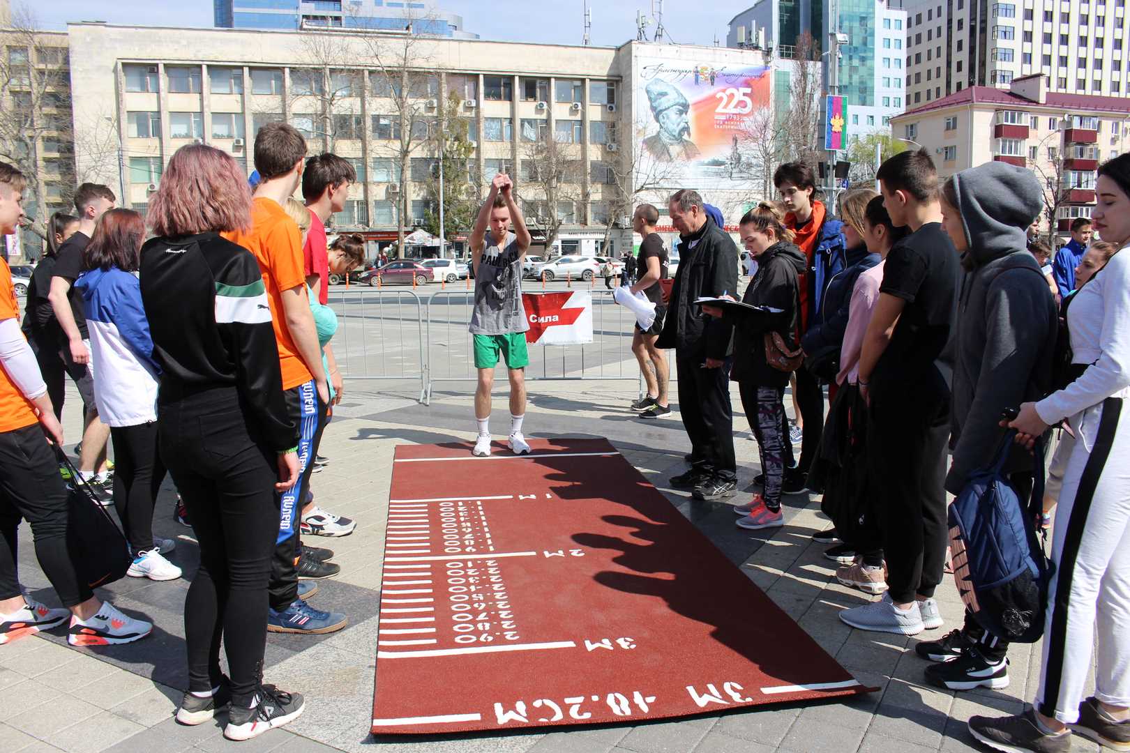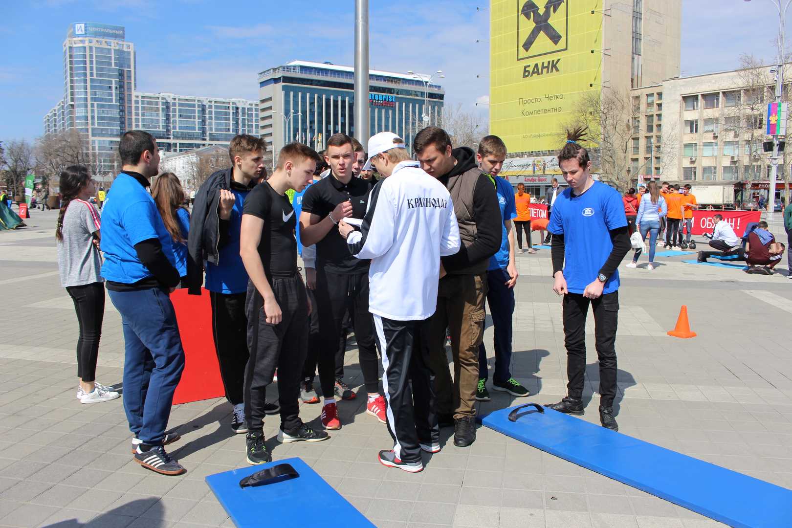 Неделя ГТО завершилась большим спортивным праздником на Театральной площади, в рамках которого студенты краснодарских ВУЗов и ССУЗов присоединились к движению ГТО.