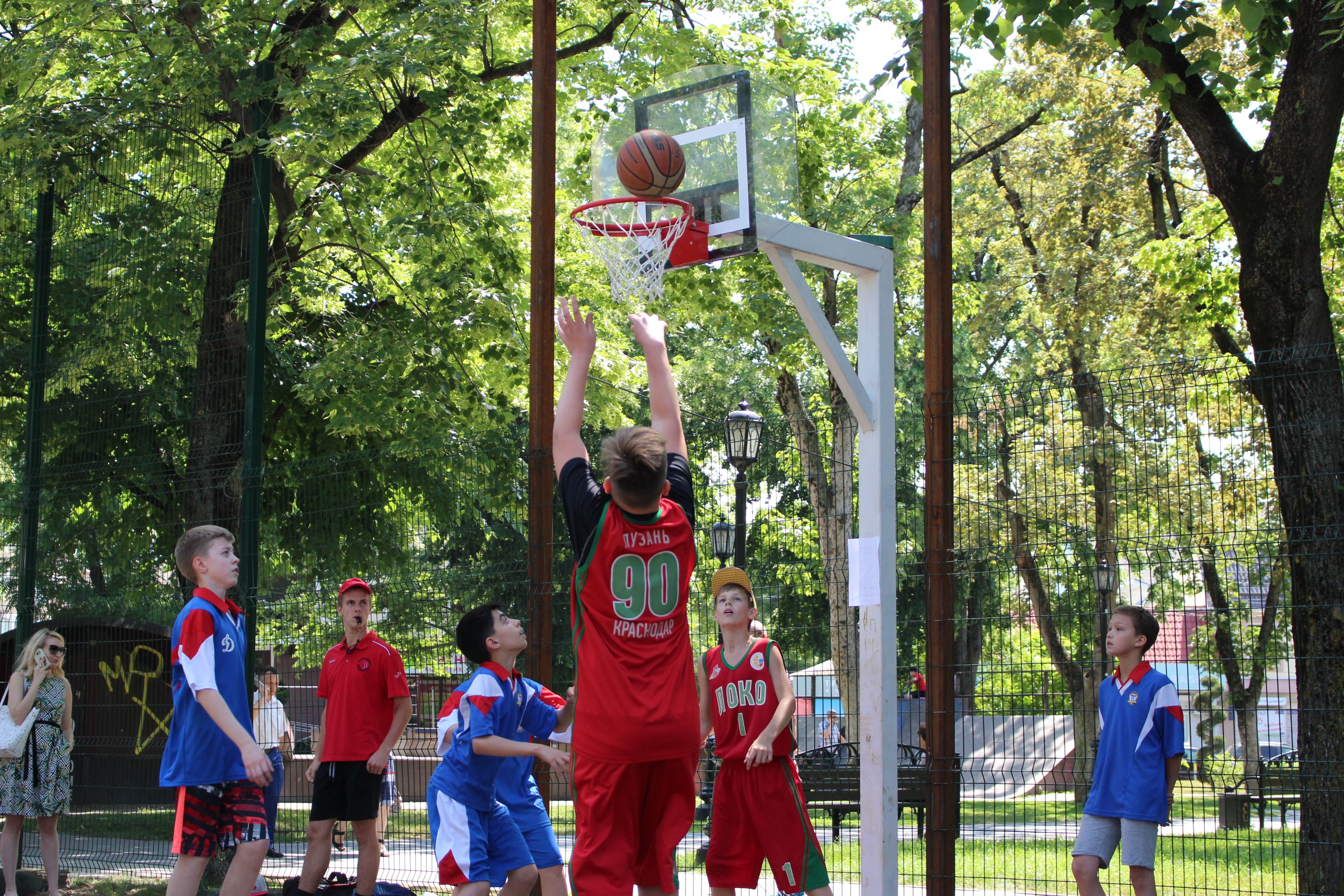 В День защиты детей на спортивных площадках сквера «Дружбы народов» состоялось торжественное открытие Всекубанского турнира по уличному баскетболу среди дворовых команд на Кубок губернатора Краснодарского края.