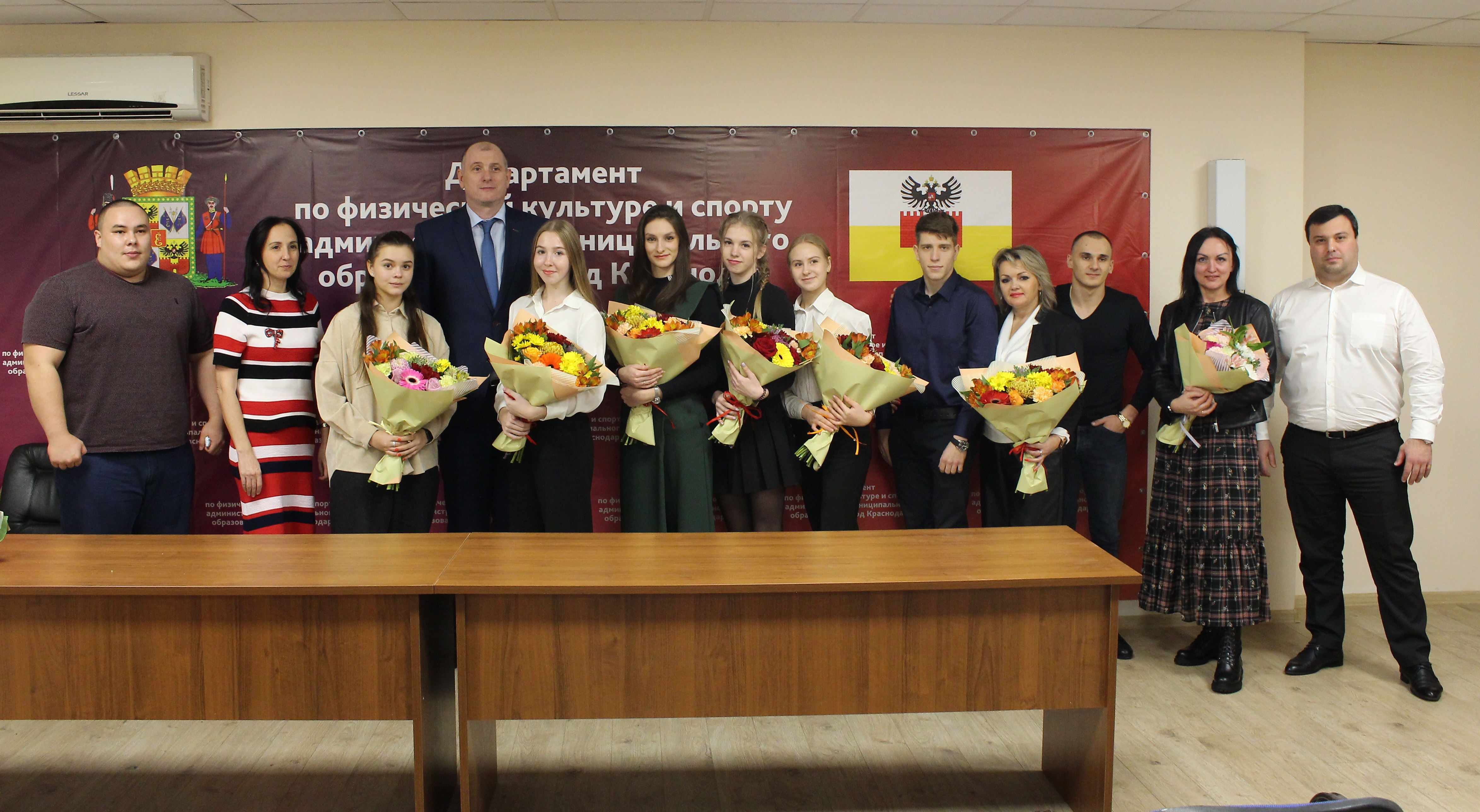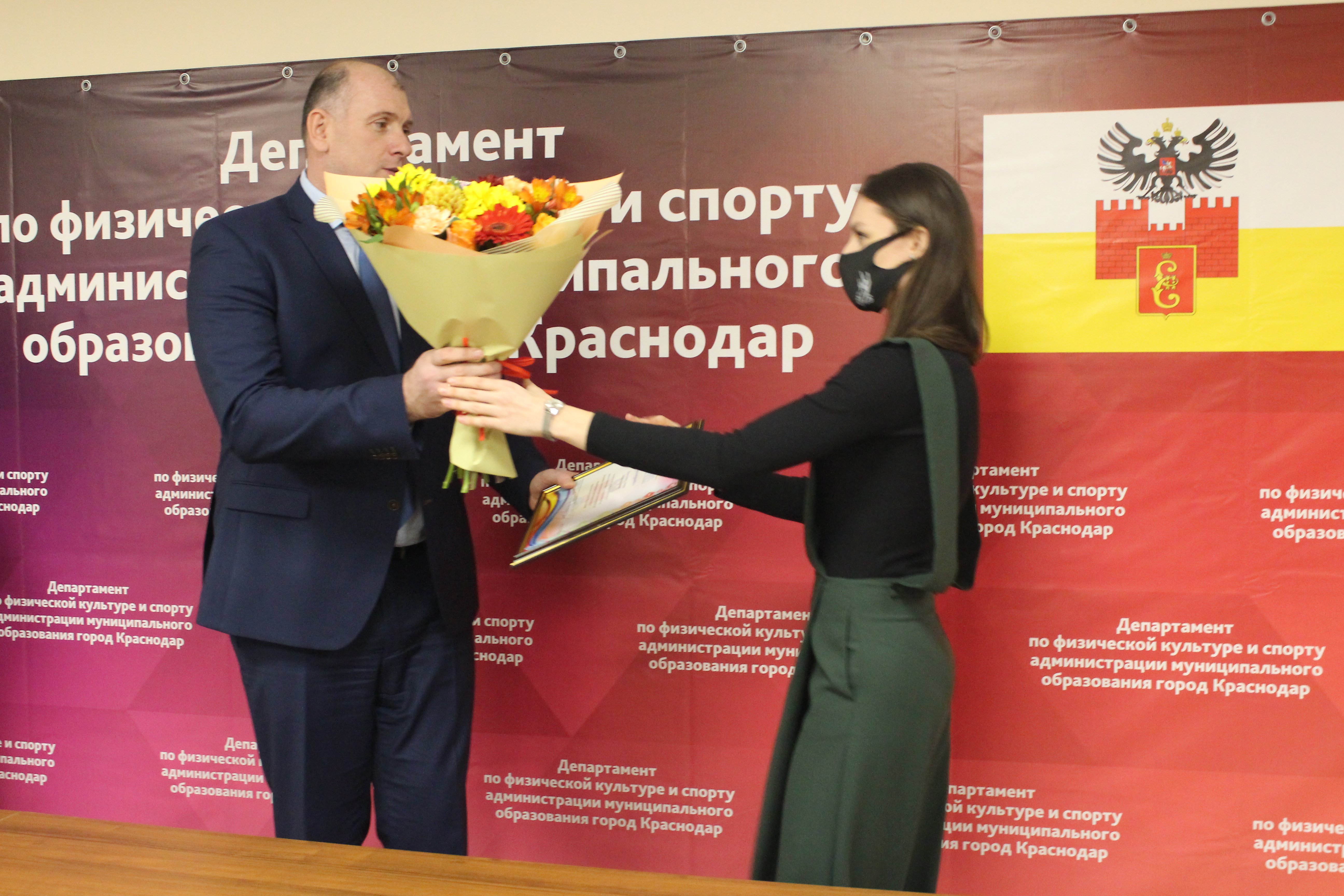 1 декабря 2021Встреча главы департамента с победителями мировых чемпионата и первенства по прыжкам на батуте и эстетической гимнастике, а также первенства Европы по пауэрлифтингу, представляющих городские спортивные школы, а также их тренерами, прошла в стенах департамента по физической культуре и спорту города Краснодара.