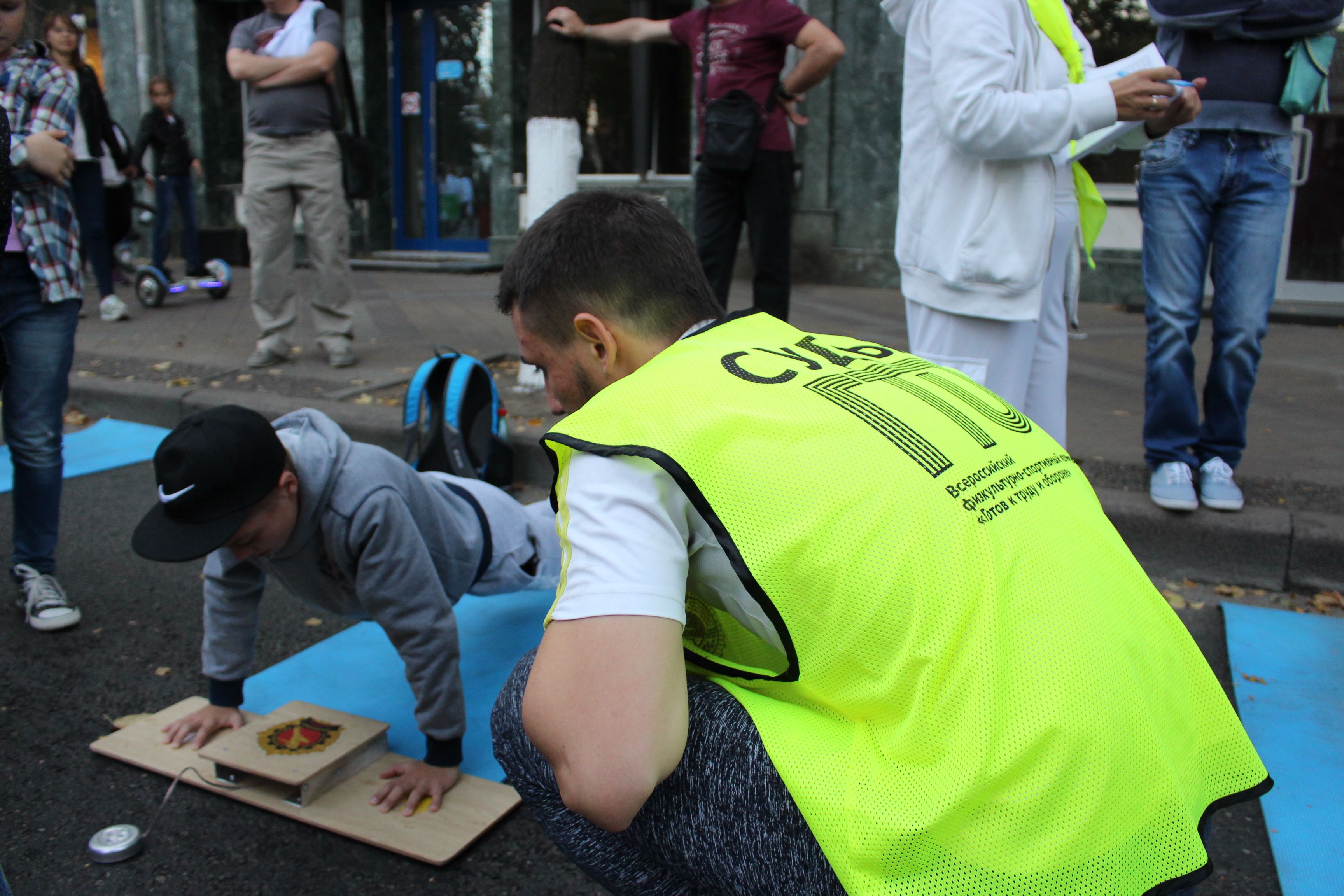Жители и гости города, предварительно зарегистрировавшиеся на сайте www.gto.ru, оценивали свое физическое развитие в выполнении нормативов. Любой желающий мог получить консультацию у судей ГТО об условиях и правилах выполнения комплекса.