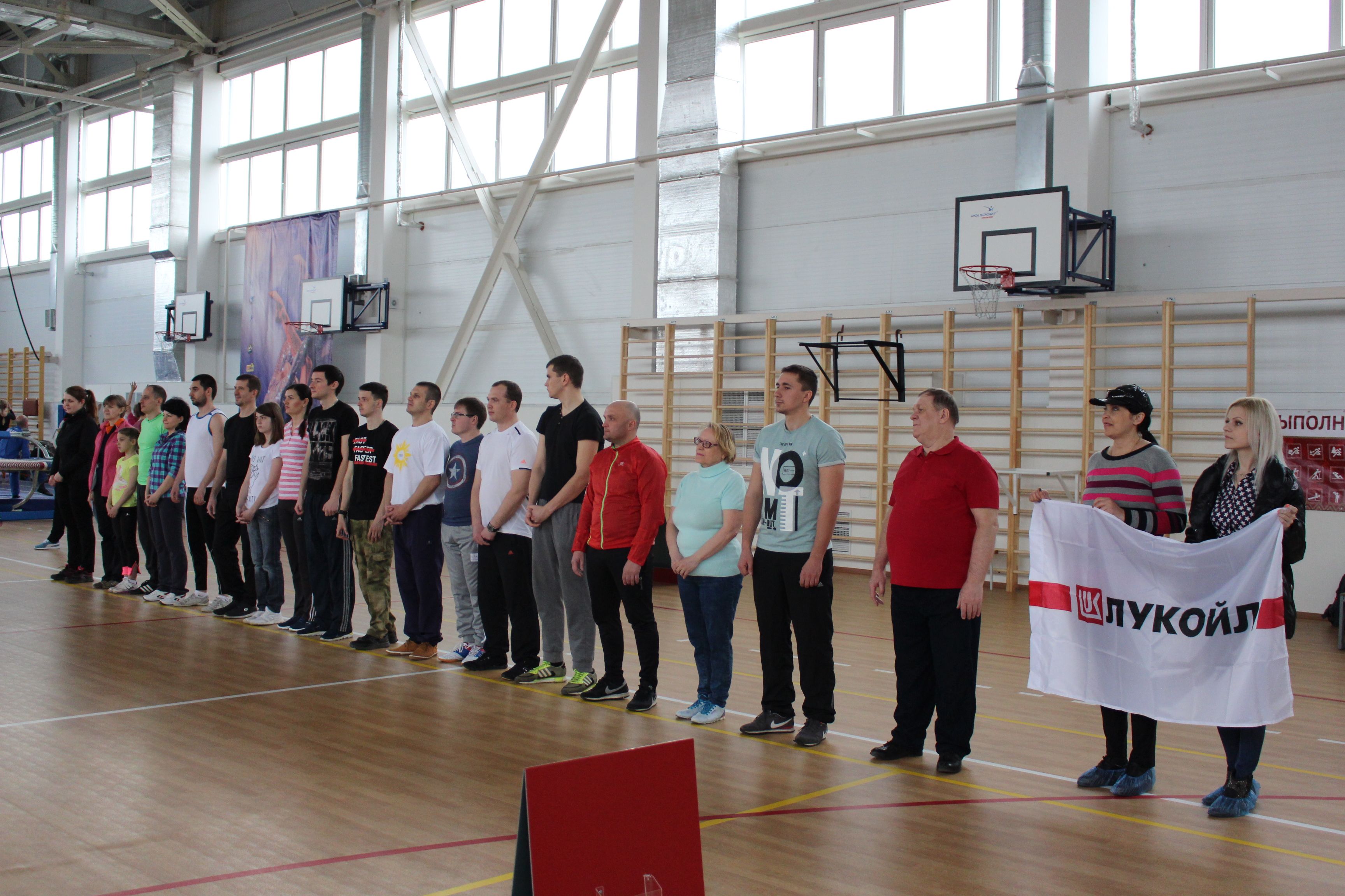После передачи эстафетной палочки и разминки, сотрудники «Лукойла» выполняли следующие нормативы Всероссийского