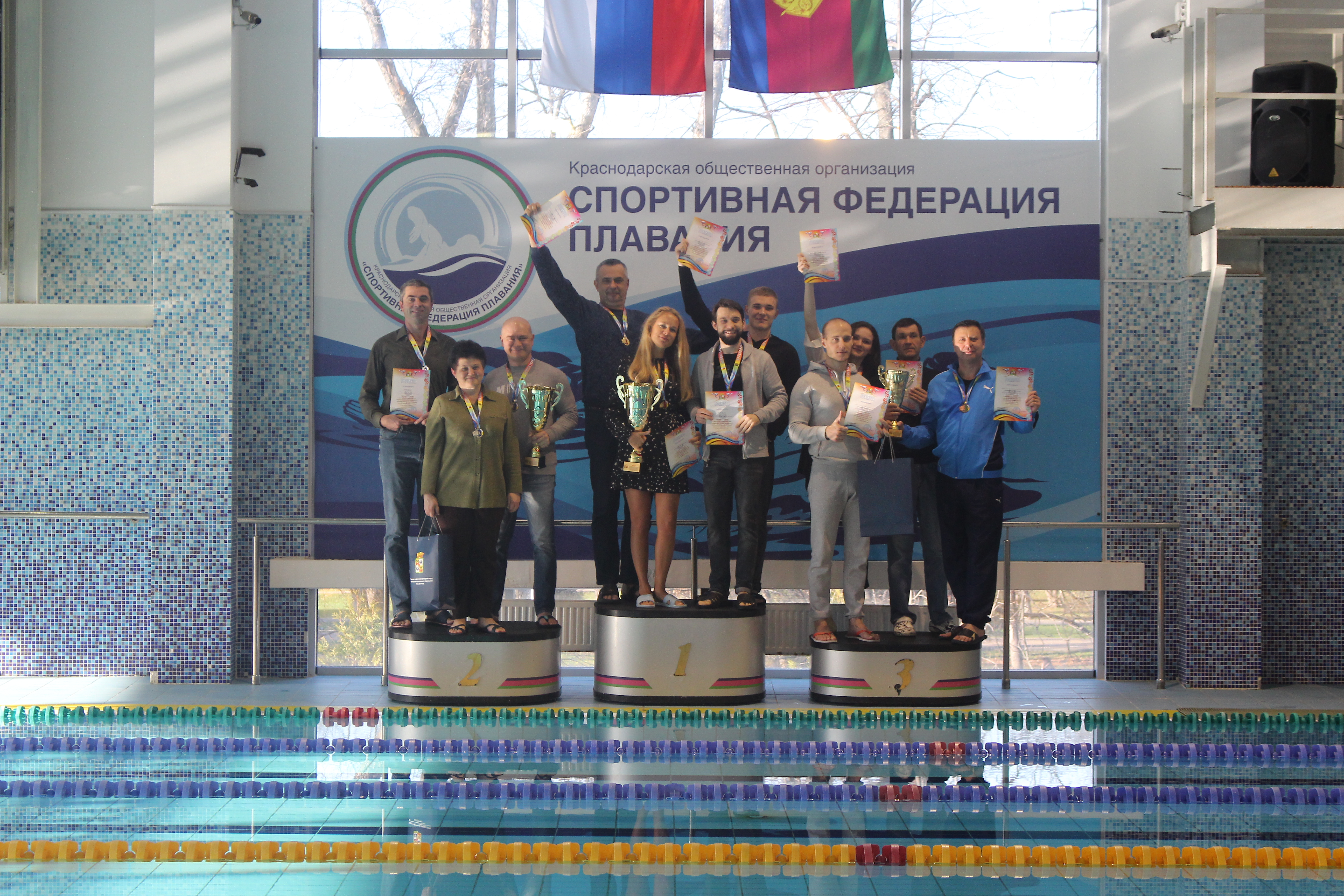 По итогам всех заплывов золотые медали турнира завоевала команда «Победа» блока городских департамента по физической культуре и спорту, департамента информационной политики, департамента внутренней политики и управления по делам молодежи. Серебряные медали достались пловцам команды «Ника» Карасунского внутригородского округа, бронза у представителей «Городской Думы».