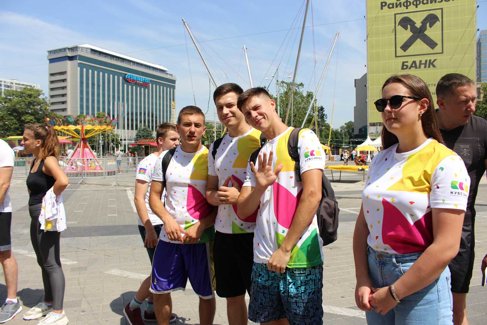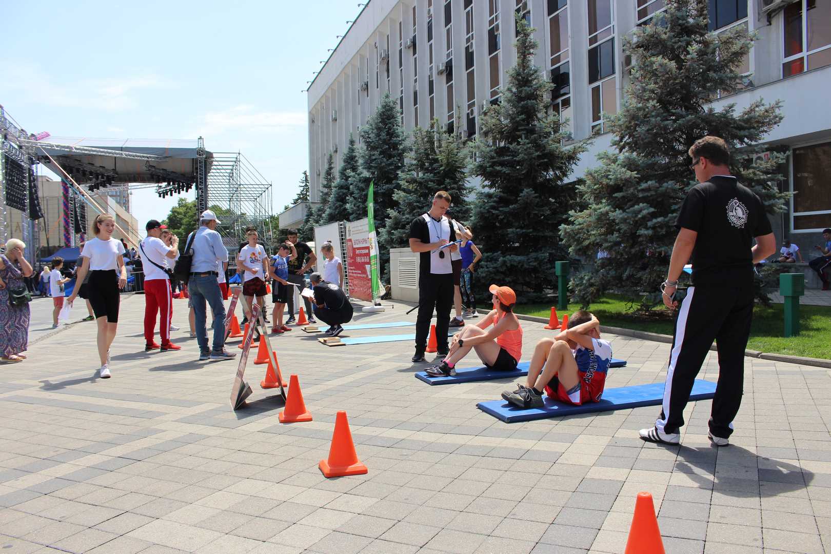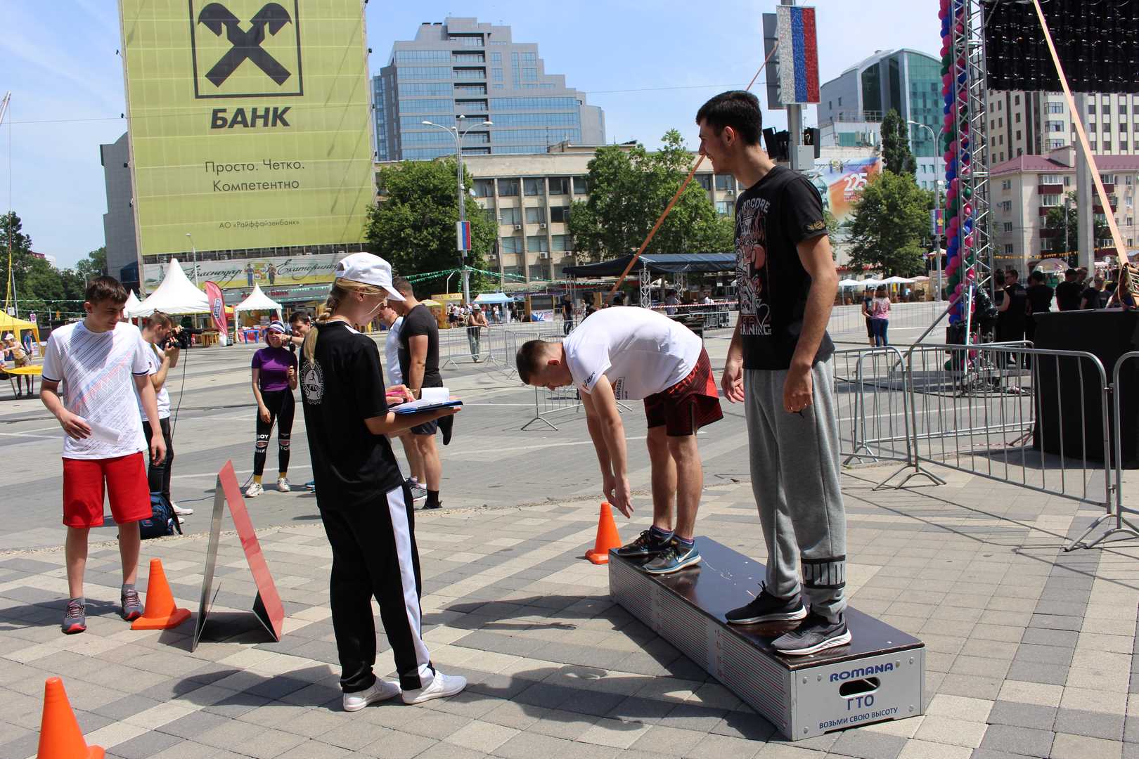 В День России на Главной городской площади состоялось физкультурно-спортивное мероприятие комплекса ГТО. В рамках праздника Краснодарская краевая молодежная общественная организация «Кубанский союз молодежи» приняла эстафету комплекса ГТО и выполнила тестирование комплекса.
