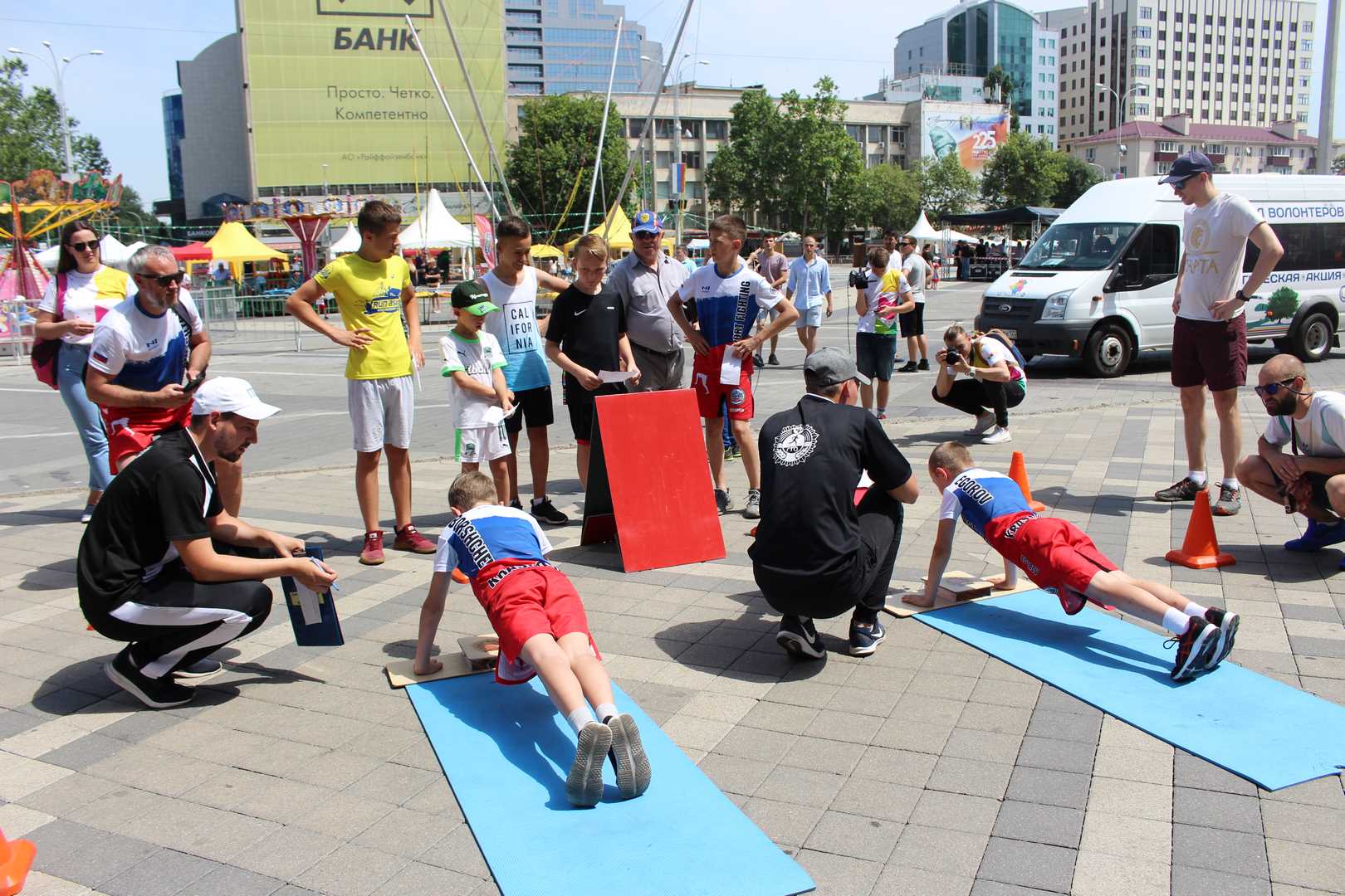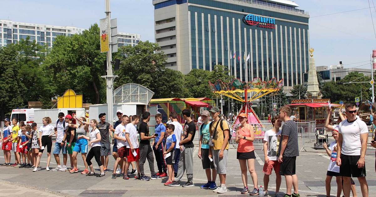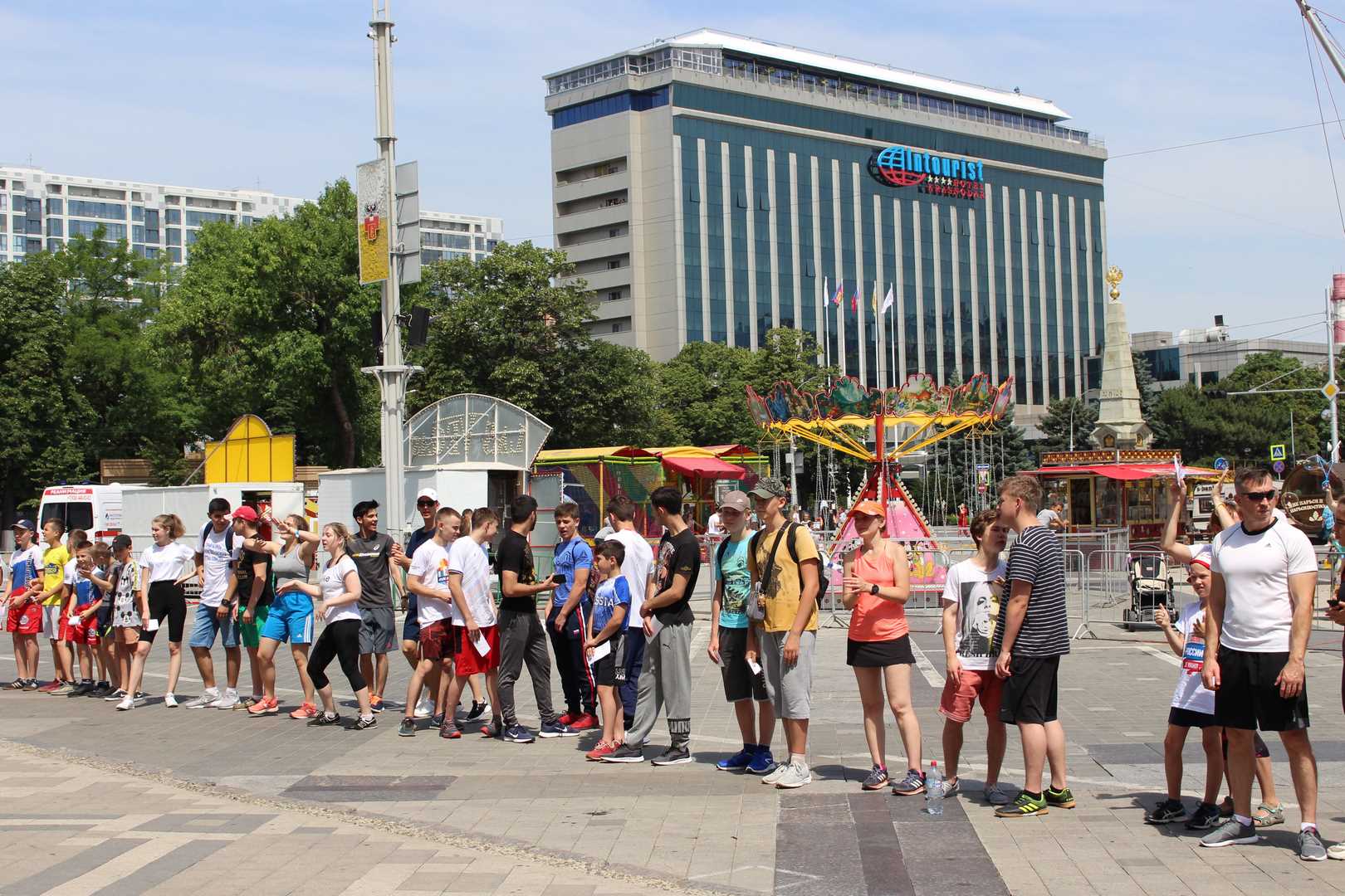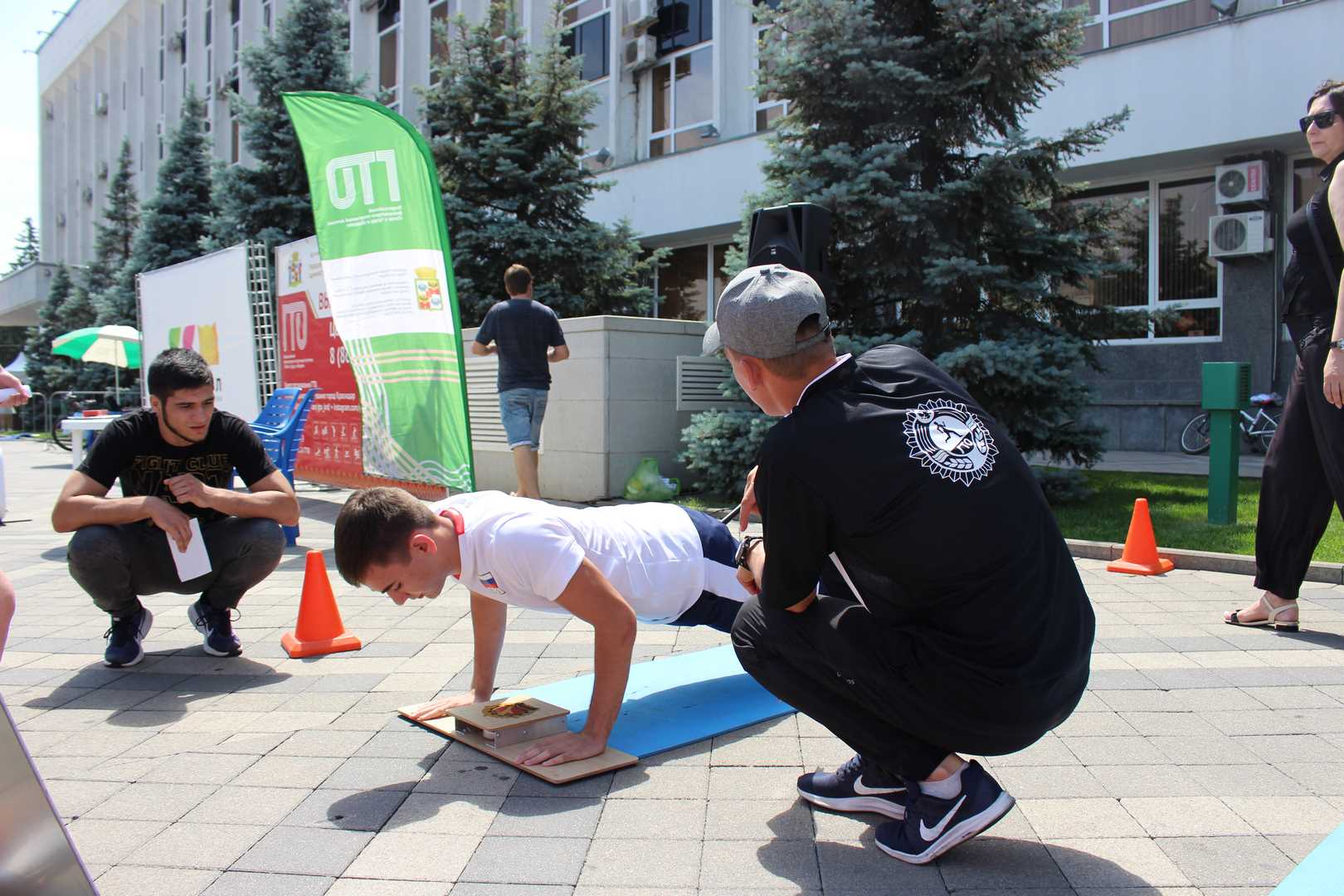 В День России на Главной городской площади состоялось физкультурно-спортивное мероприятие комплекса ГТО. В рамках праздника Краснодарская краевая молодежная общественная организация «Кубанский союз молодежи» приняла эстафету комплекса ГТО и выполнила тестирование комплекса.