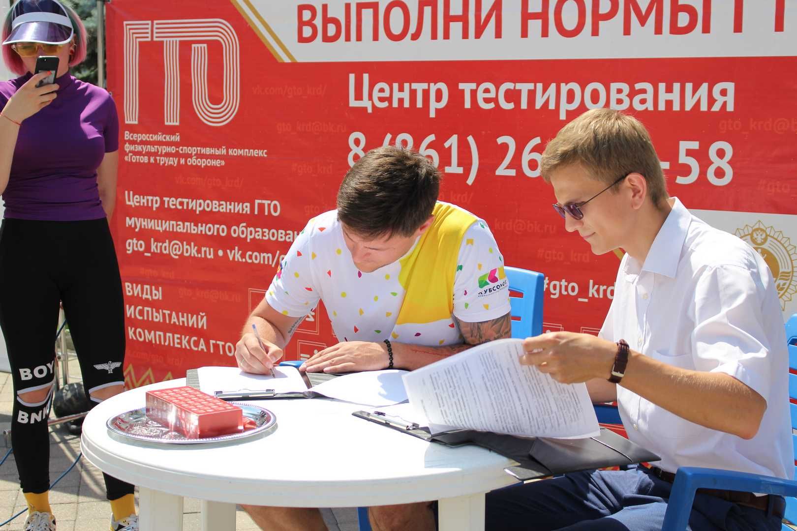 Важным событием стало подписание договора о сотрудничестве муниципального бюджетного учреждения «Центр физкультурно-массовой работы» с КубСоМолом. Эстафетная палочка Всероссийского физкультурно-спортивного комплекса ГТО перешла от Федерации самолетного спорта Краснодарского края - Кубанскому союзу молодежи.