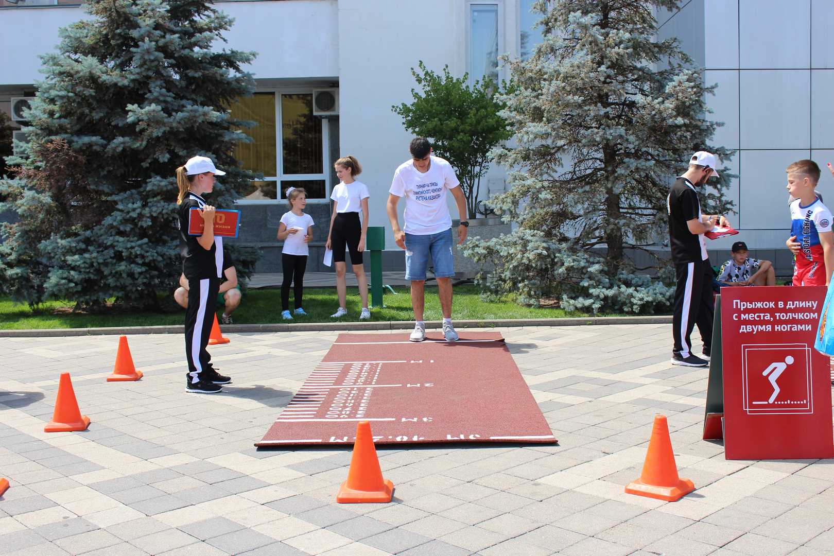 Судьи краснодарского Центра тестирования ГТО проверили физическое развитие участников по следующим видам испытаний: наклон вперед на гимнастической скамье, прыжок в длину с места толчком двумя ногами, поднимание туловища из положения лежа на спине, сгибание и разгибание рук в упоре лежа на полу.