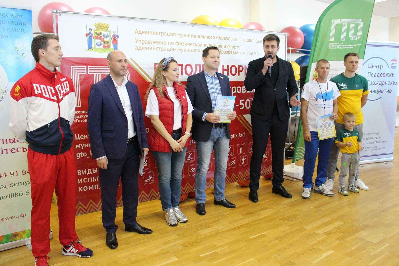 На мероприятии присутствовали председатель Краснодарской общественной организации «Союз многодетных семей «Кубанская семья» Светлана Недилько, директор муниципального бюджетного учреждения Роман Хубулов, генеральный директор Фонда развития Краснодарского края, кандидат социологических наук Илья Шакалов, помощник регионального координатора Центра поддержки гражданских инициатив Ярослав Князев, серебряный призер летних Олимпийских игр в Лондоне, многократный призер чемпионатов мира, двукратный чемпион 1 Европейских игр 2015 года в городе Баку, член сборной России по прыжкам на батуте, заслуженный мастер спорта России, посол ГТО в Краснодарском крае Дмитрий Ушаков, представитель общественной организации «Федерация волейбола Краснодарского края» Виктор Павлов, руководитель общественного движения «Папы Краснодара» Игорь Поляков.