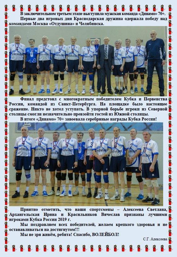 Приятно отметить, что наши спортсмены – Алексеева Светлана, Архангельская Ирина и Красильников Вячеслав признаны лучшими игроками Кубка России 2019 г.