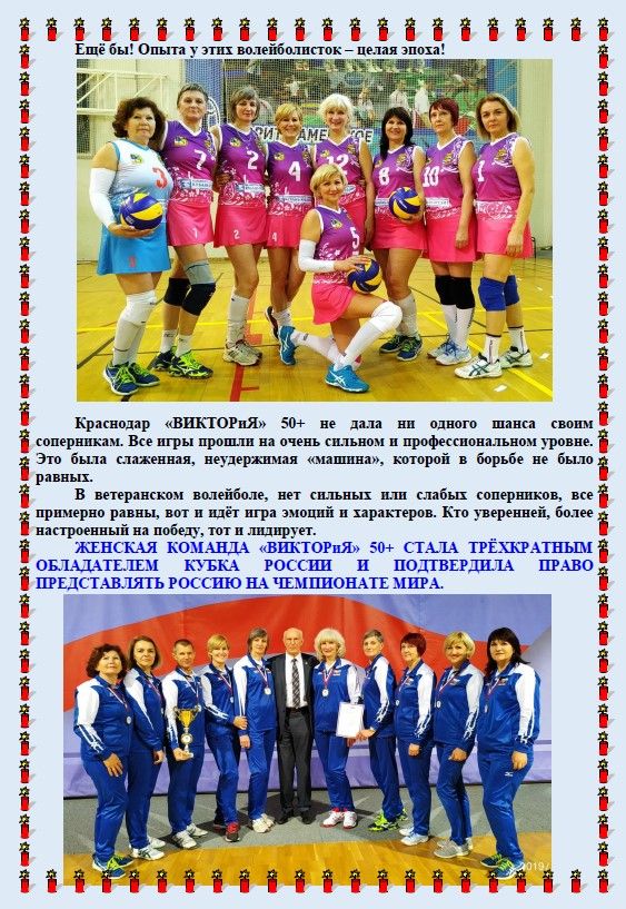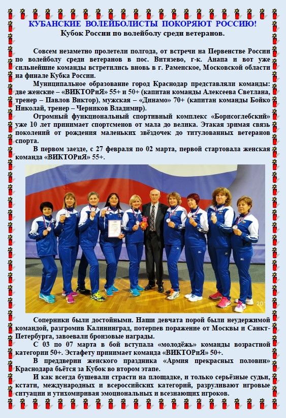 Женская команда «ВИКТОРиЯ» 50+ стала трёхкратным обладателем Кубка России и получила право представлять Россию на Чемпионате Мира.