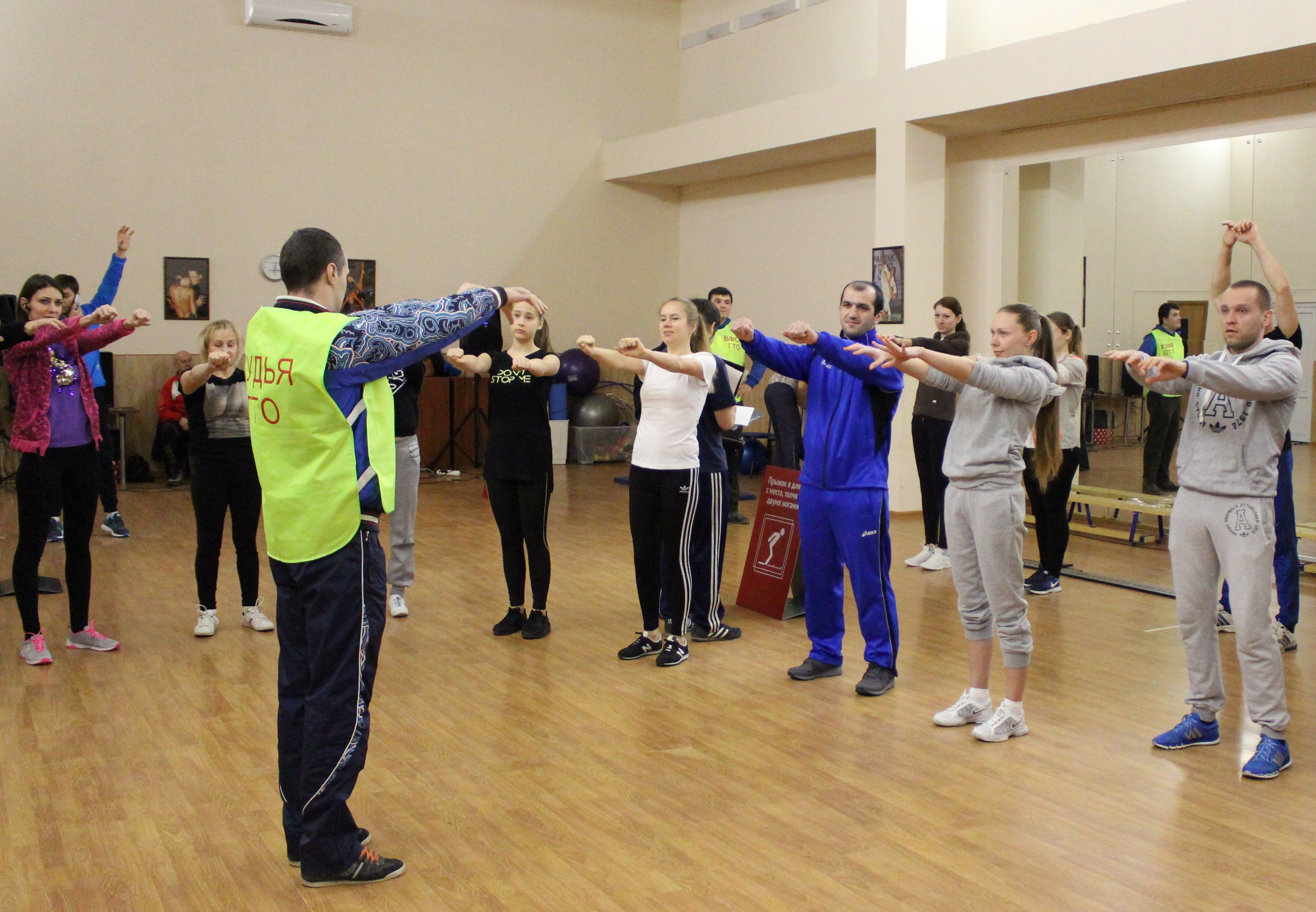 Первыми оценили уровень физического развития сотрудники городского управления по физической культуре и спорту. В Дворце спорта «Олимп» они выполняли нормативы в соответствии со ступенями ГТО. Лучше всего им давались упражнения на пресс, сложности возникали при подтягивании на перекладине.