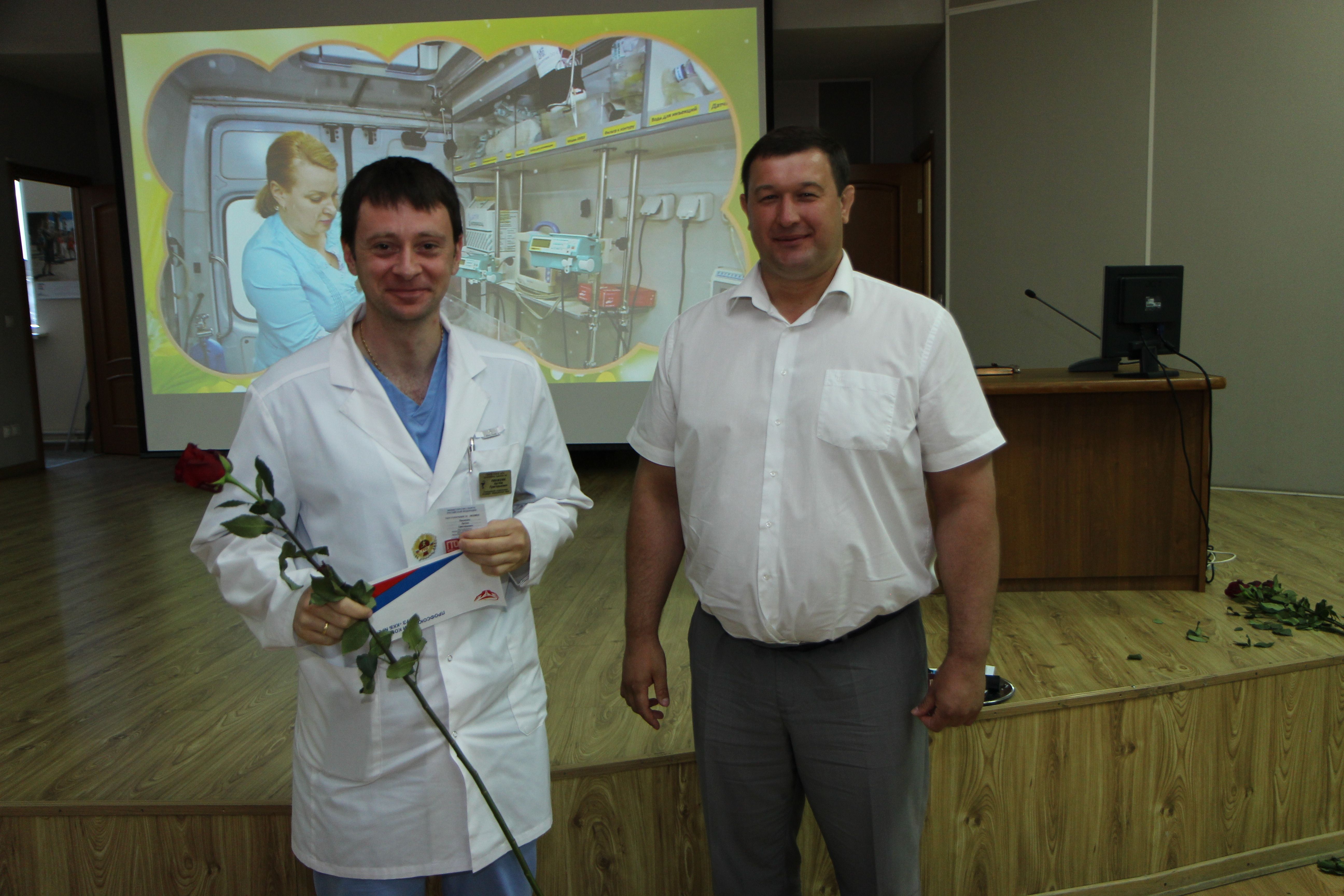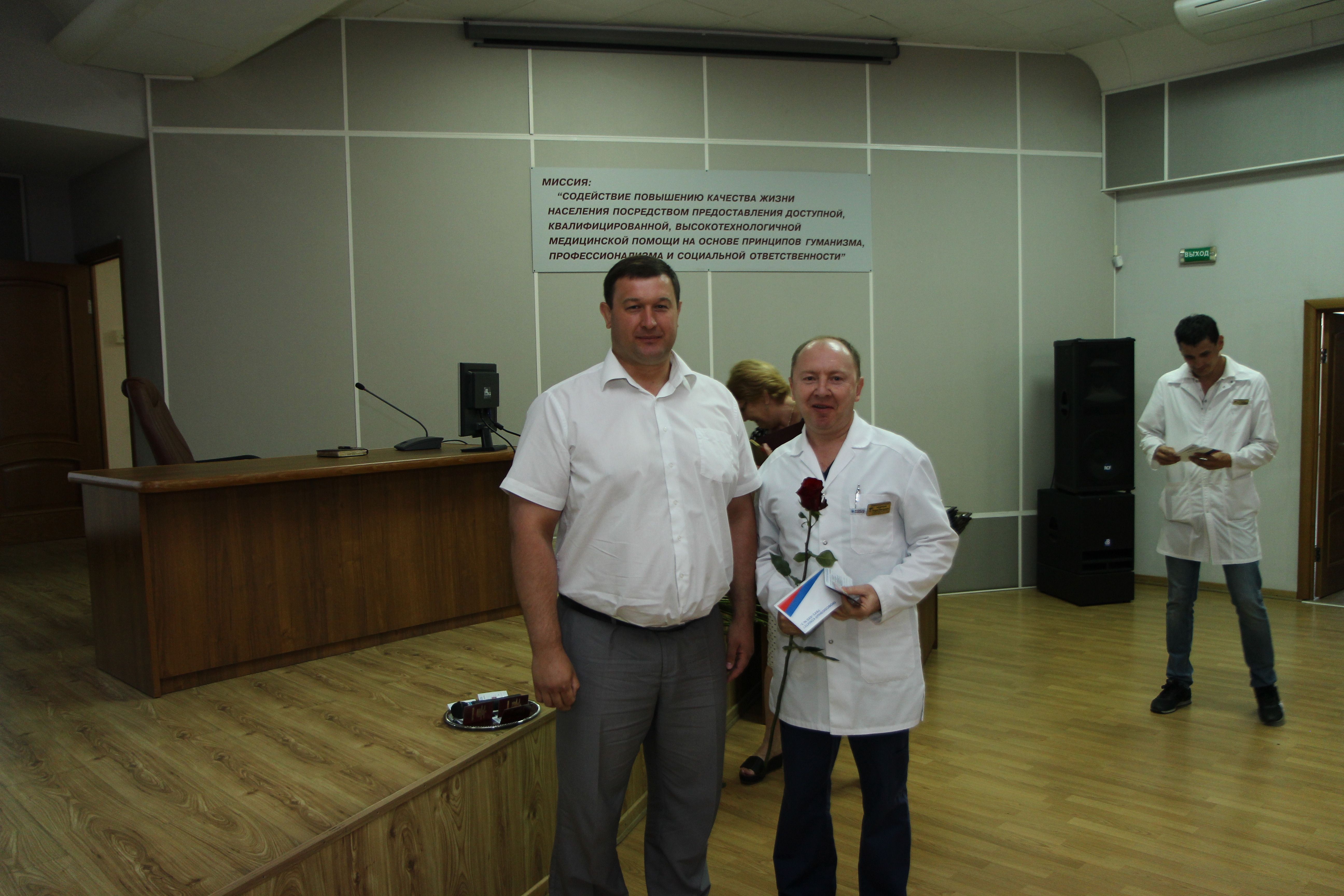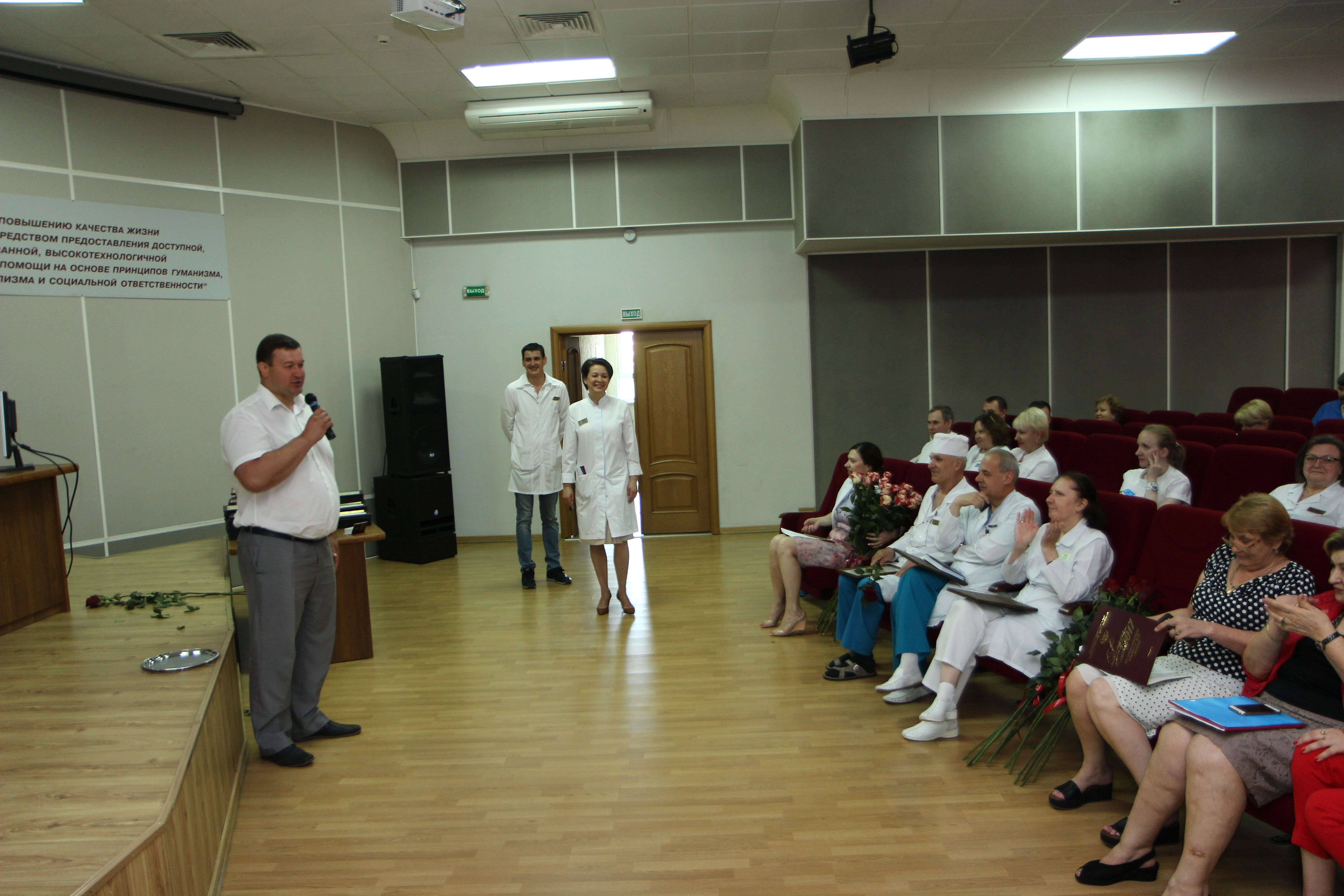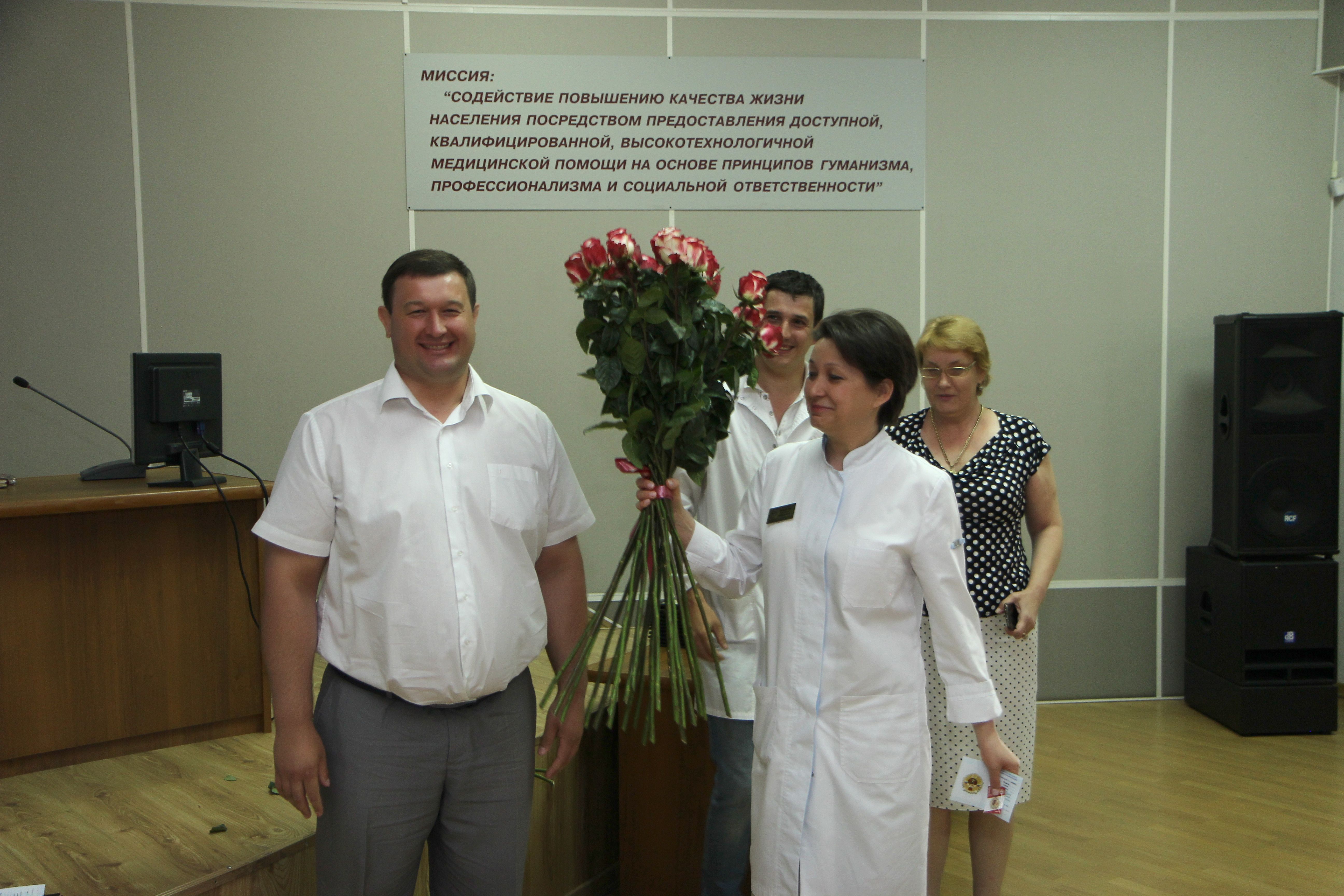 Председатель комитета по вопросам здравоохранения и социальной защиты населения Николай Николаевич Петропавловский и начальник управления по физической культуре и спорту Анатолий Николаевич Мирошников вручили знаки ГТО исполняющему обязанности главного врача Галине Юрьевне Модель; заведующему отделением рентгенохирургических методов диагностики и лечения № 1 Андрею Викторовичу Андрееву; заведующему хирургическим отделением № 4 Александру Владимировичу Макаренко; заведующему отделением урологии № 2 Пенжоян Артему Григорьевичу; менеджеру отдела добровольного медицинского страхования Замову Дмитрию Игоревичу.