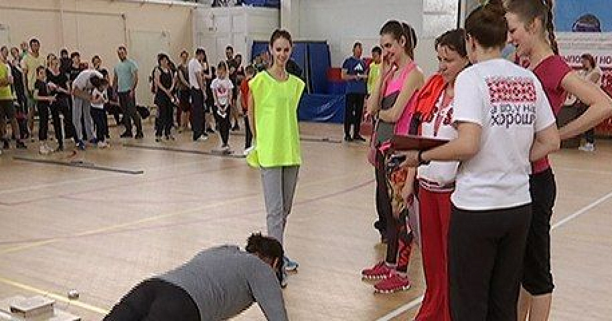 Таких спортивных пап и мам пришло около 200. За время фестиваля они выполнили упражнения на пресс, прыжки в длину, подтягивания, отжимания и наклоны вперед.