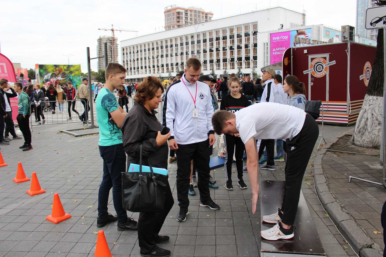 Также на мероприятии работала информационная площадка ГТО, где все желающие получили подробную информацию о комплексе, графике тестирования и возрастных ступенях. Судьи Центра тестирования продемонстрировали правильное выполнение нормативов: сгибание и разгибание рук в упоре лежа на полу, наклон вперед из положения стоя на гимнастической скамье, подтягивание и поднимание туловища из положения лежа.