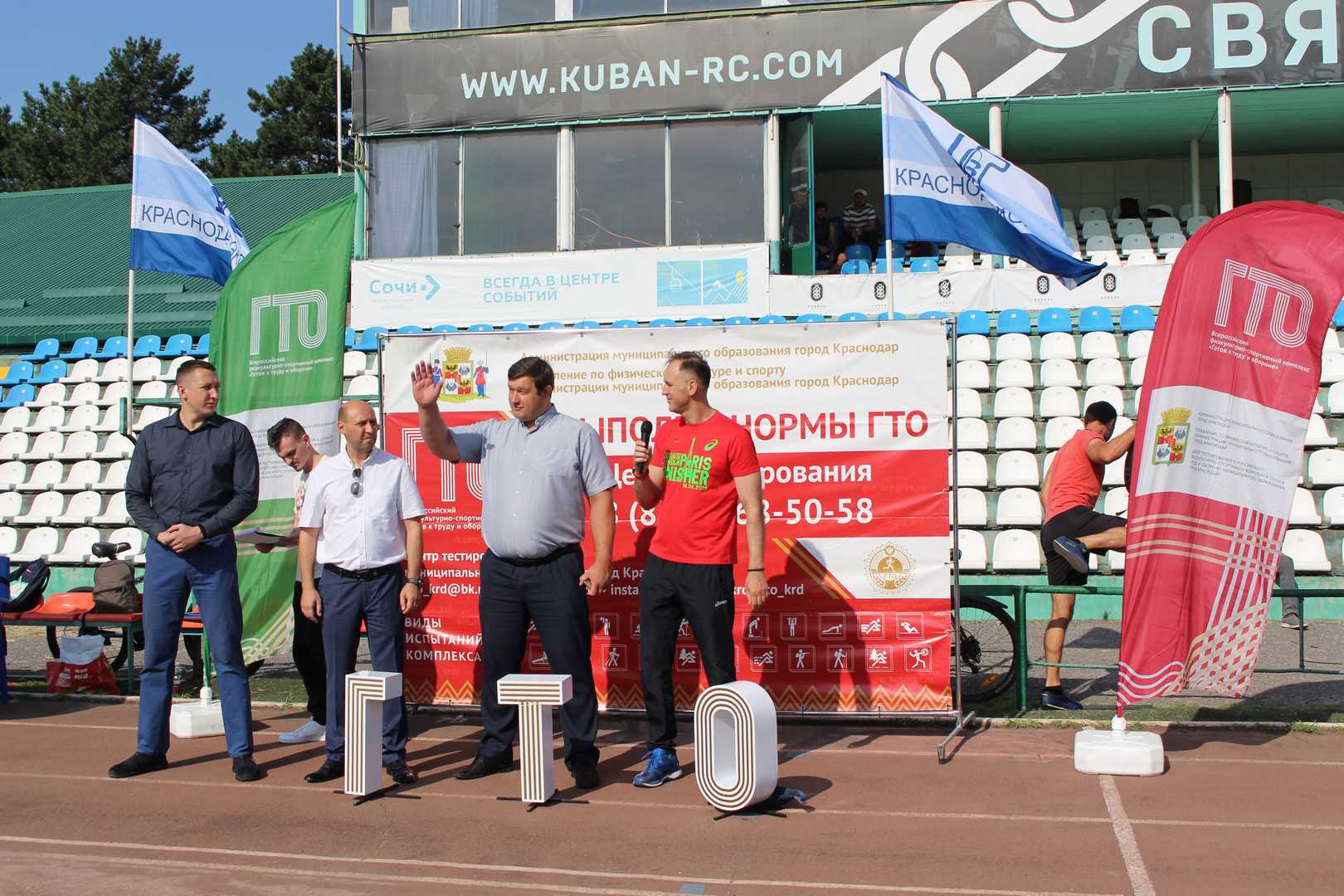 В нем приняли участие начальник управления по физической культуре и спорту Анатолий Мирошников, генеральный директор АО «Краснодарский нефтеперерабатывающий завод – «Краснодарэконефть» Алексей Сидоров, директор муниципального учреждения «Центр физкультурно-массовой работы» Роман Хубулов, наставник сектора правопорядка и безопасности Кубанского союза молодежи Сергей Грабский.