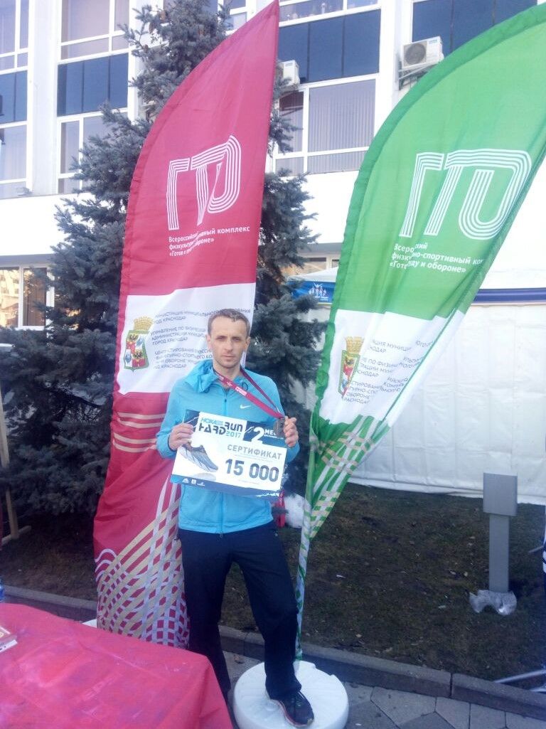 Главный судья краснодарского центра тестирования «Готов к труду и обороне» Сергей Бойченко по результатам марафона на дистанцию 25 км занял второе место.