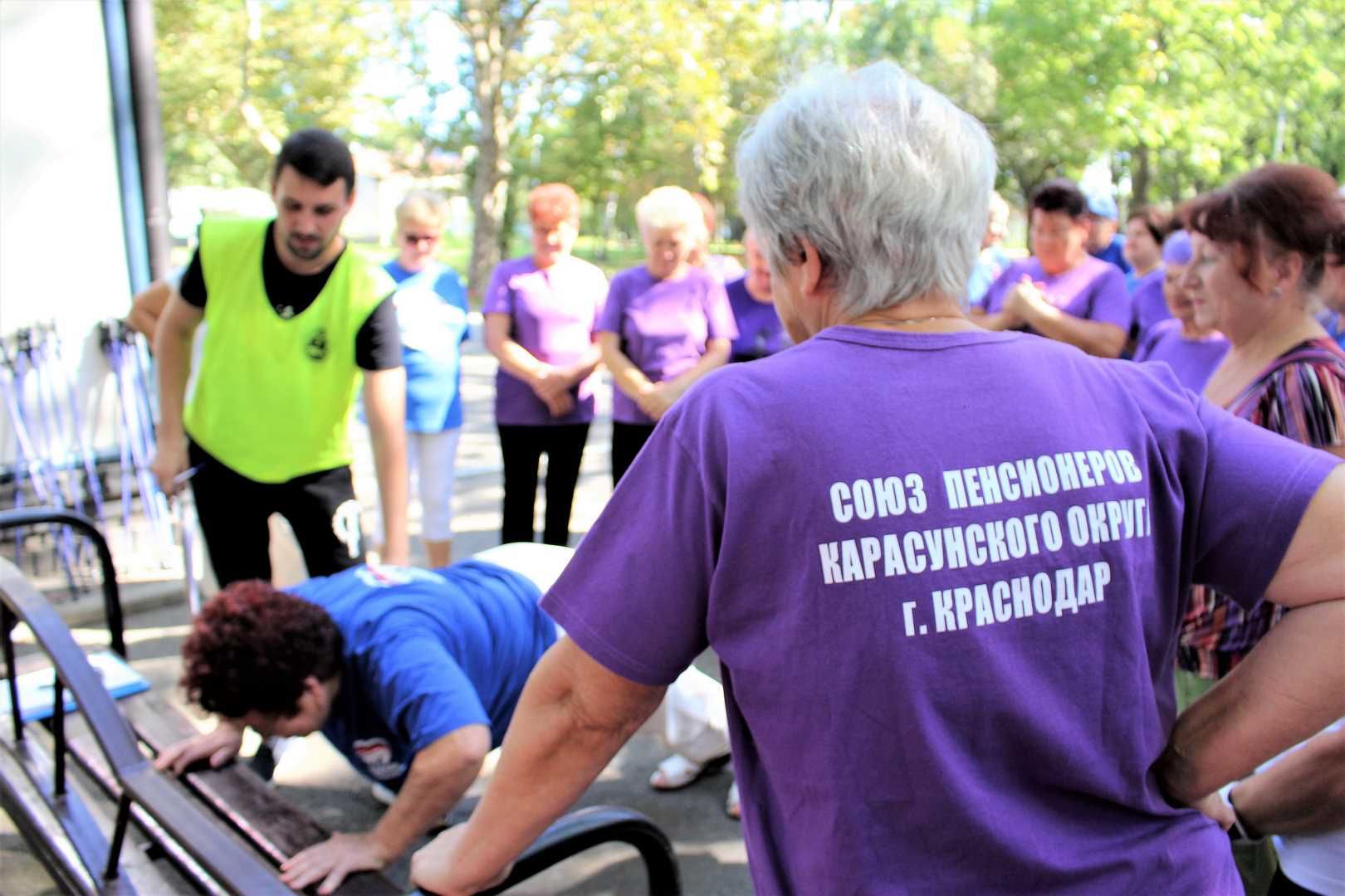В парке «Солнечный остров» члены Союза пенсионеров Карасунского округа города Краснодара выполнили нормативы Всероссийского комплекса ГТО.