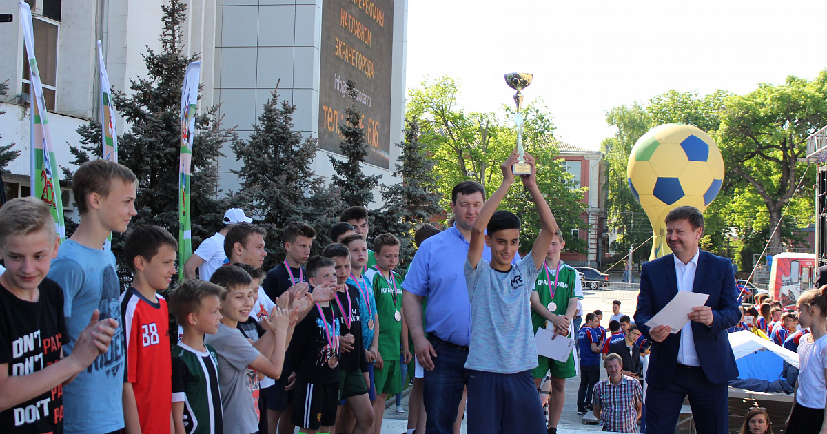 Мероприятие прошло на Театральной площади города. Участниками стали юные футболисты 16 дворовых команд по