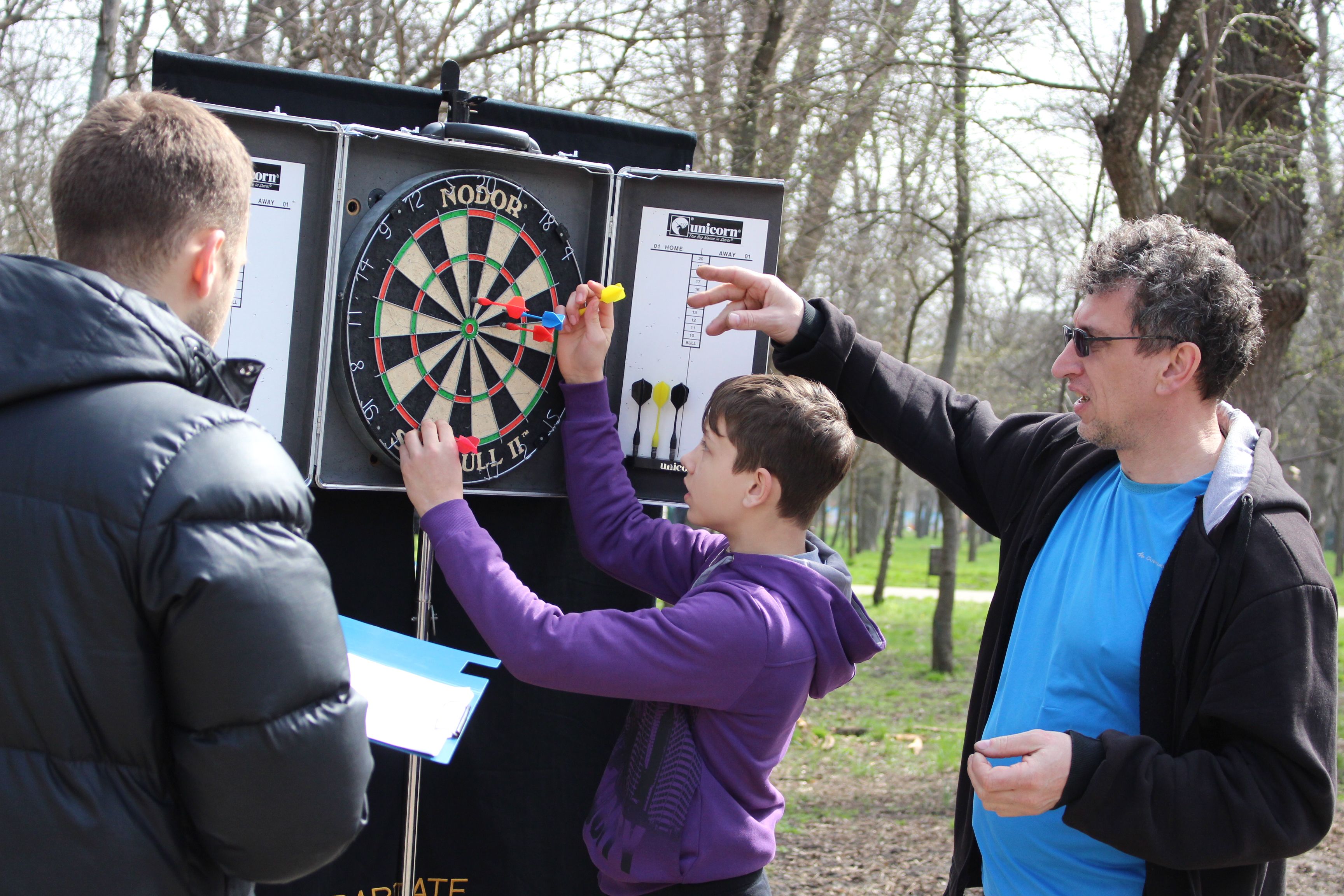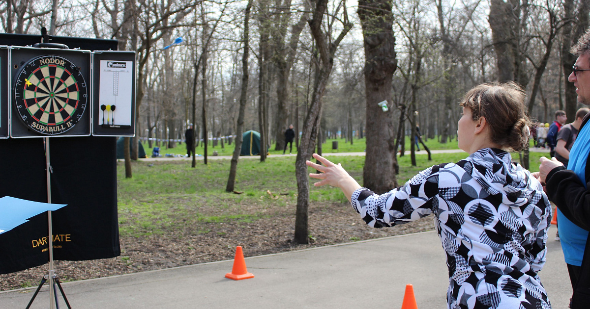 Родители с детьми участвовали в соревнованиях по настольному теннису, дартсу, шашкам, а также в двух эстафетах.