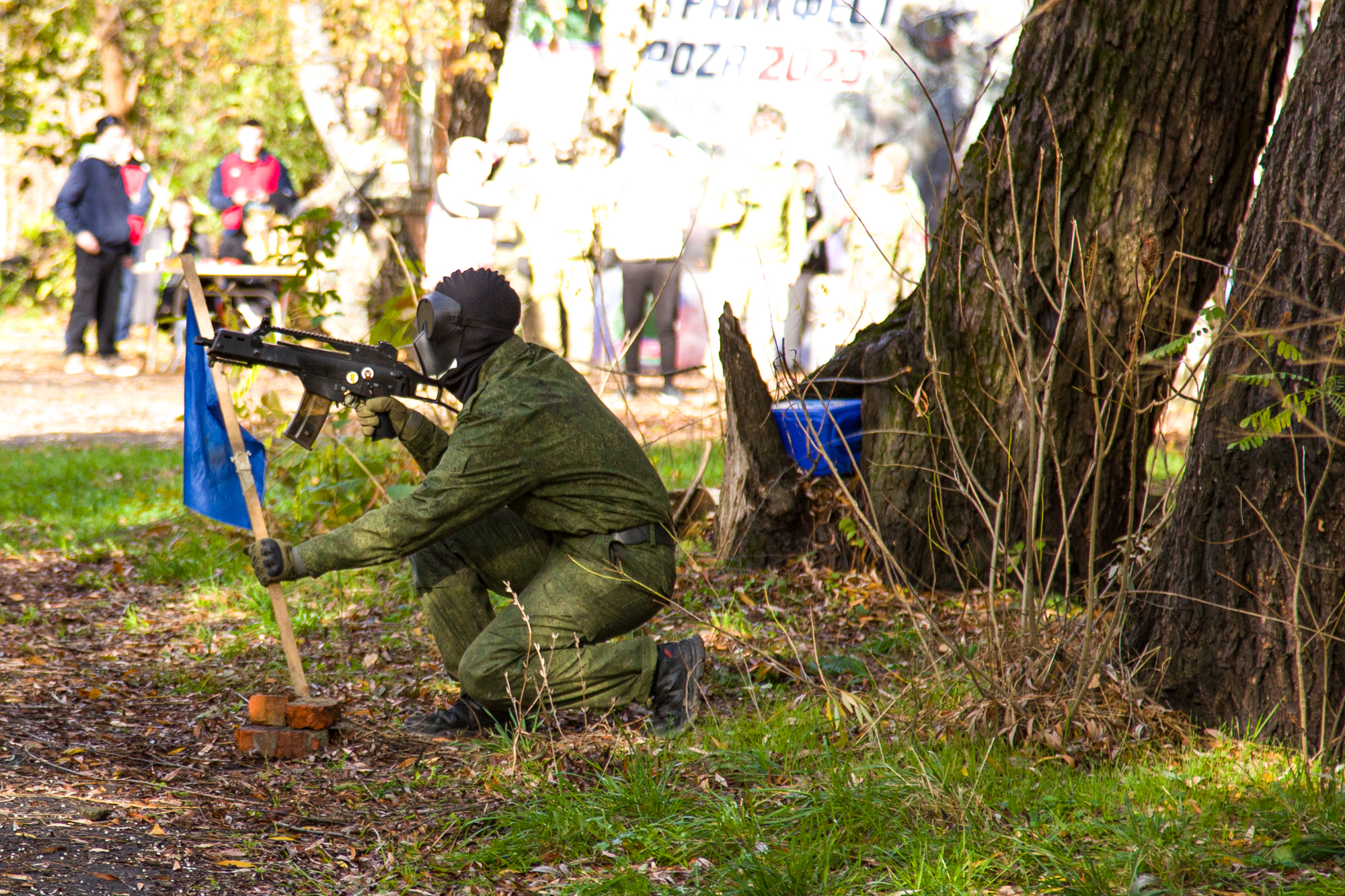В меткости, сноровке и смекалке состязались 5 команд. Им нужно было «захватить» базу противника и завладеть флагом.
