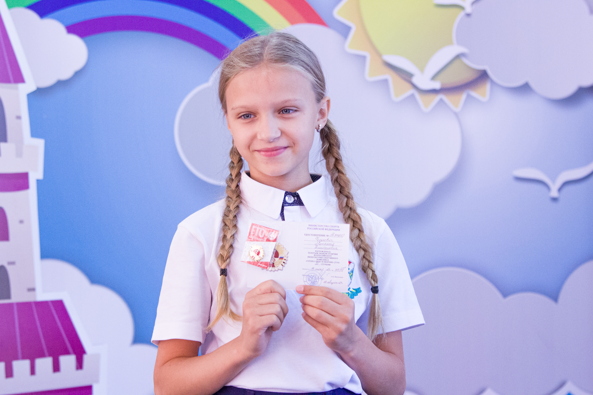 На торжественной линейке собралась почти вся начальная школа. В церемонии награждения участвовала директор Центра физкультурно-массовой работы Ирина Юнг. Она вручила 27 золотых и 2 серебряных знака.