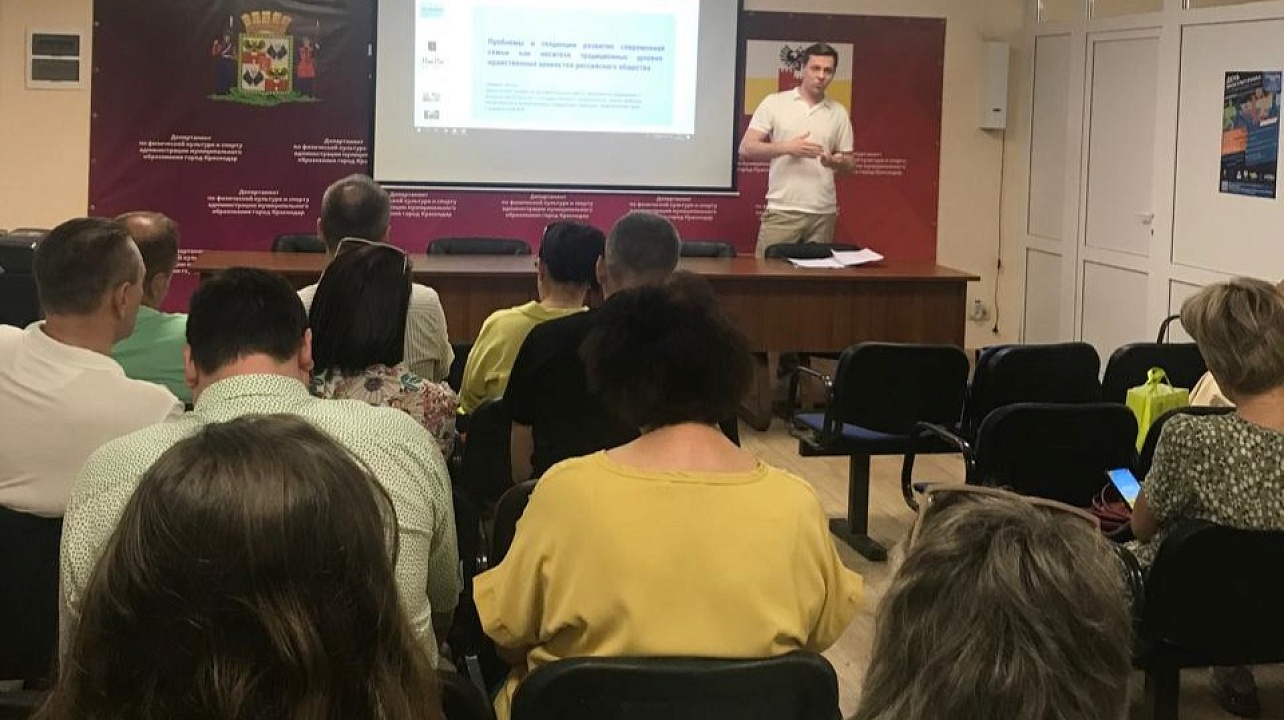 О традиционных духовно-нравственных ценностях и основах крепких семейных отношений рассказали сотрудникам департамента по физической культуре и спорту, а также подведомственных учреждений. Тематическую встречу провёл лектор Общества «Знание» доцент кафедры политологии и политического управления Кубанского государственного университета, кандидат политических наук Виктор Скоробогатов.