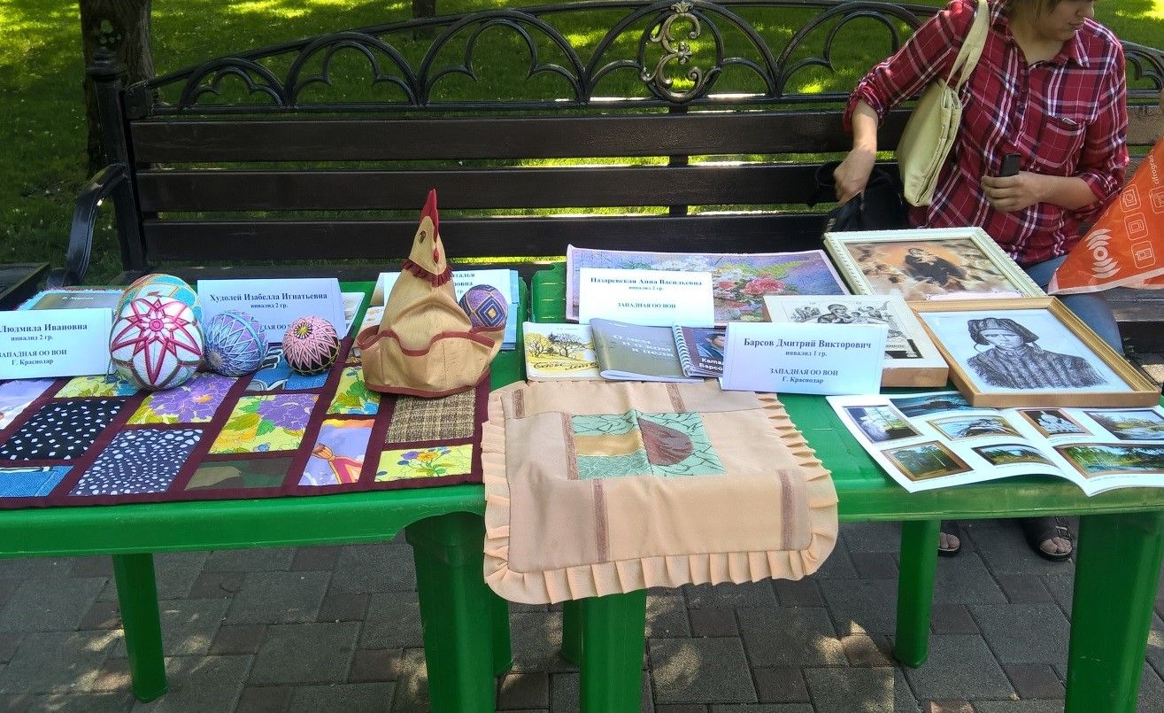 В начале мероприятия для зрителей каждое Всероссийское общество инвалидов по всем округам представило выставку поделок самых активных людей с ограниченными возможностями здоровья. На столах разместились картины, сделанные с помощью компьютерной 3-D графики, вышитые крестиком, нарисованные фломастерами и ручками. Также, были представлены изделия мастеров бисероплетения, ожерелья, браслеты и другие виды украшений.