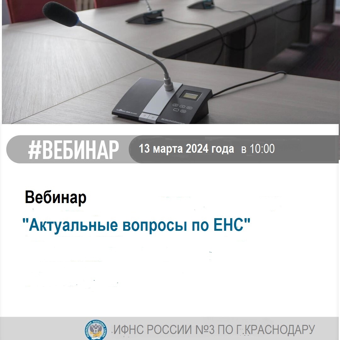 В целях повышения эффективности налогового администрирования приглашаем принять участие в вебинаре на тему «Основные вопросы по ЕНС". Вебинар состоится 11.03.2024 в 10.00. Предварительная регистрация в Инспекции для участия не требуется. Задать вопросы можно заранее по электронной почте: vebinar2309@mail.ru или по телефону: 8(861) 991-46-09 (доб.27). Принять участие в онлайн – трансляции можно, подключившись по ссылке: https://vs07.nalog.ru/c/8007825968. Предварительно необходимо скачать бесплатное приложение