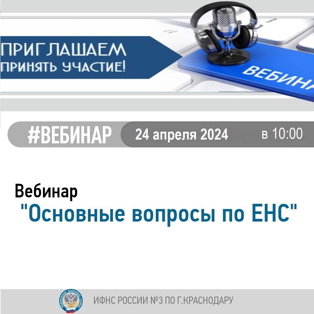 В целях повышения эффективности налогового администрирования приглашаем принять участие в вебинаре на тему «Основные вопросы по ЕНС". Вебинар состоится 24.04.2024 в 10.00. Предварительная регистрация в Инспекции для участия не требуется. Задать вопросы можно заранее по электронной почте: vebinar2309@mail.ru или по телефону: 8(861) 991-46-09 (доб.27). Принять участие в онлайн – трансляции можно, подключившись по ссылке: https://vs07.nalog.ru/c/8007825968. Предварительно необходимо скачать бесплатное приложение