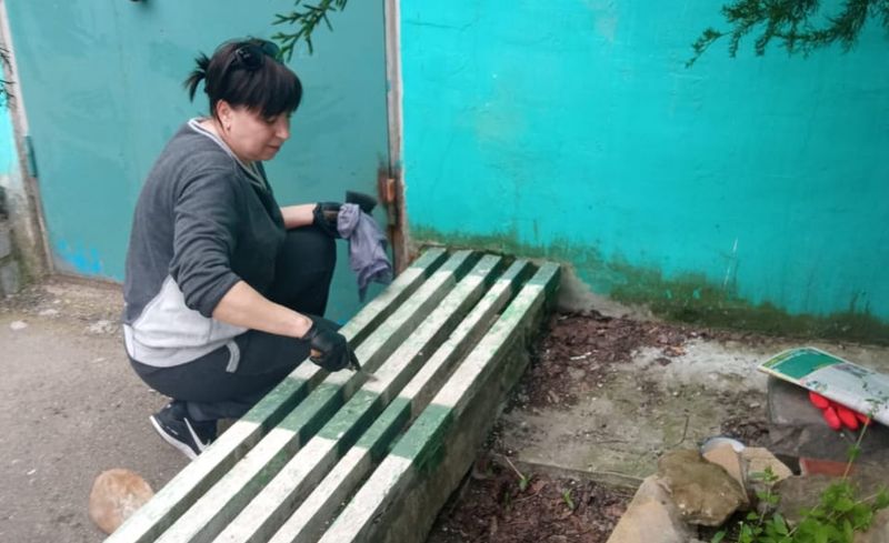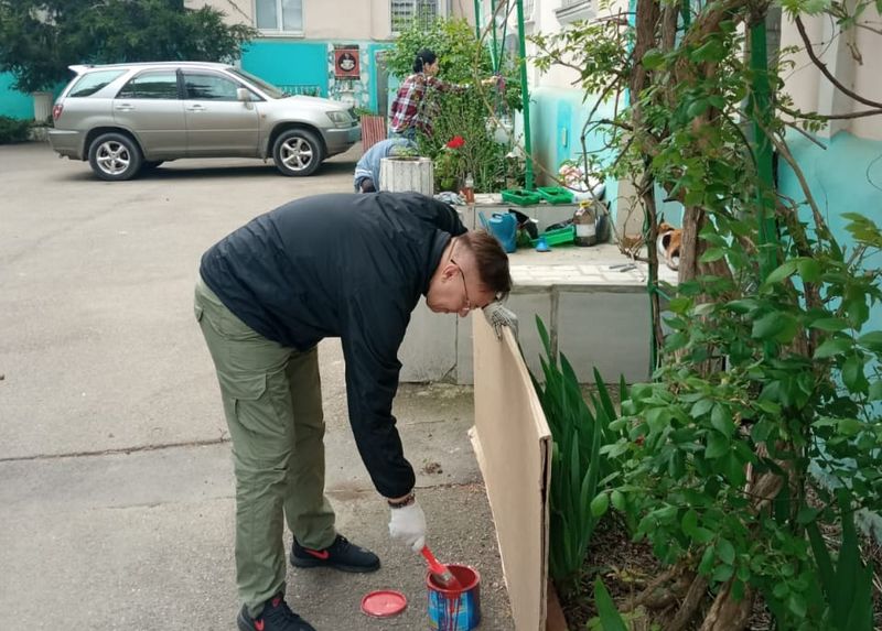 Привести в порядок свои дворы вышли неравнодушные жители дома. Они покрасили ограждение, лавочки, урны, вскопали клумбы. К субботнику привлекли и маленьких жителей дома, они помогали взрослым убрать бросовый мусор с детских площадок.