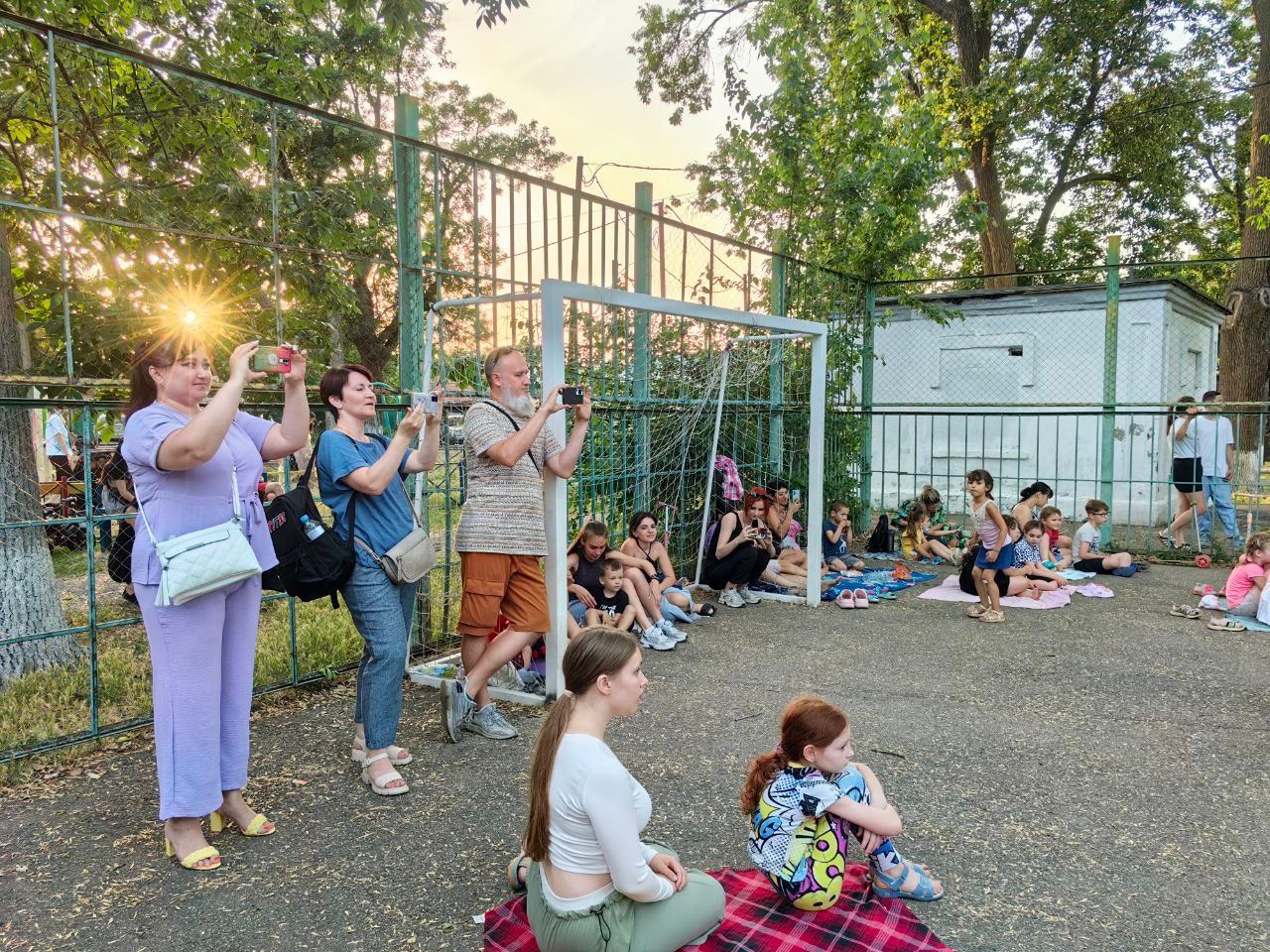 В сквере «Дубинском» прошел бесплатный кинопоказ под открытым небом. Акция началась с выступления лауреатов международных и всероссийских конкурсов и фестивалей, вокальной студии «ТУТТИ & ТУТТИ». Для жителей микрорайона они устроили небольшой концерт.