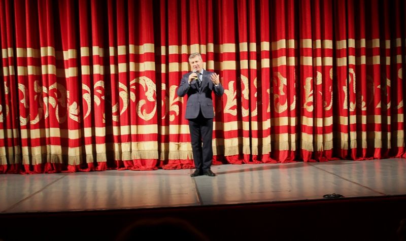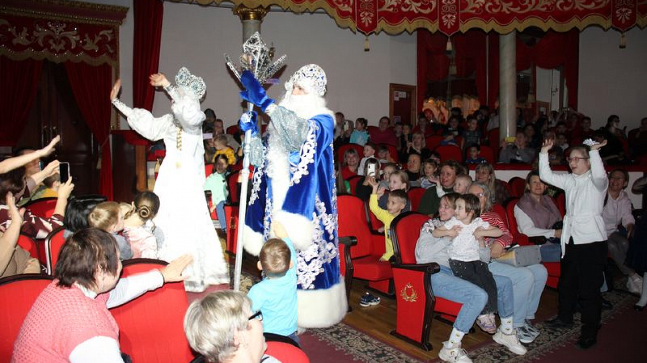 В Краснодарской краевой филармонии им. Г.Ф. Пономаренко для детей округа состоялся новогодний спектакль. Перед праздничным представлением ребят порадовали веселой интермедией. Дед Мороз, Снегурочка и ростовые куклы провели увлекательные игры, конкурсы и викторины.