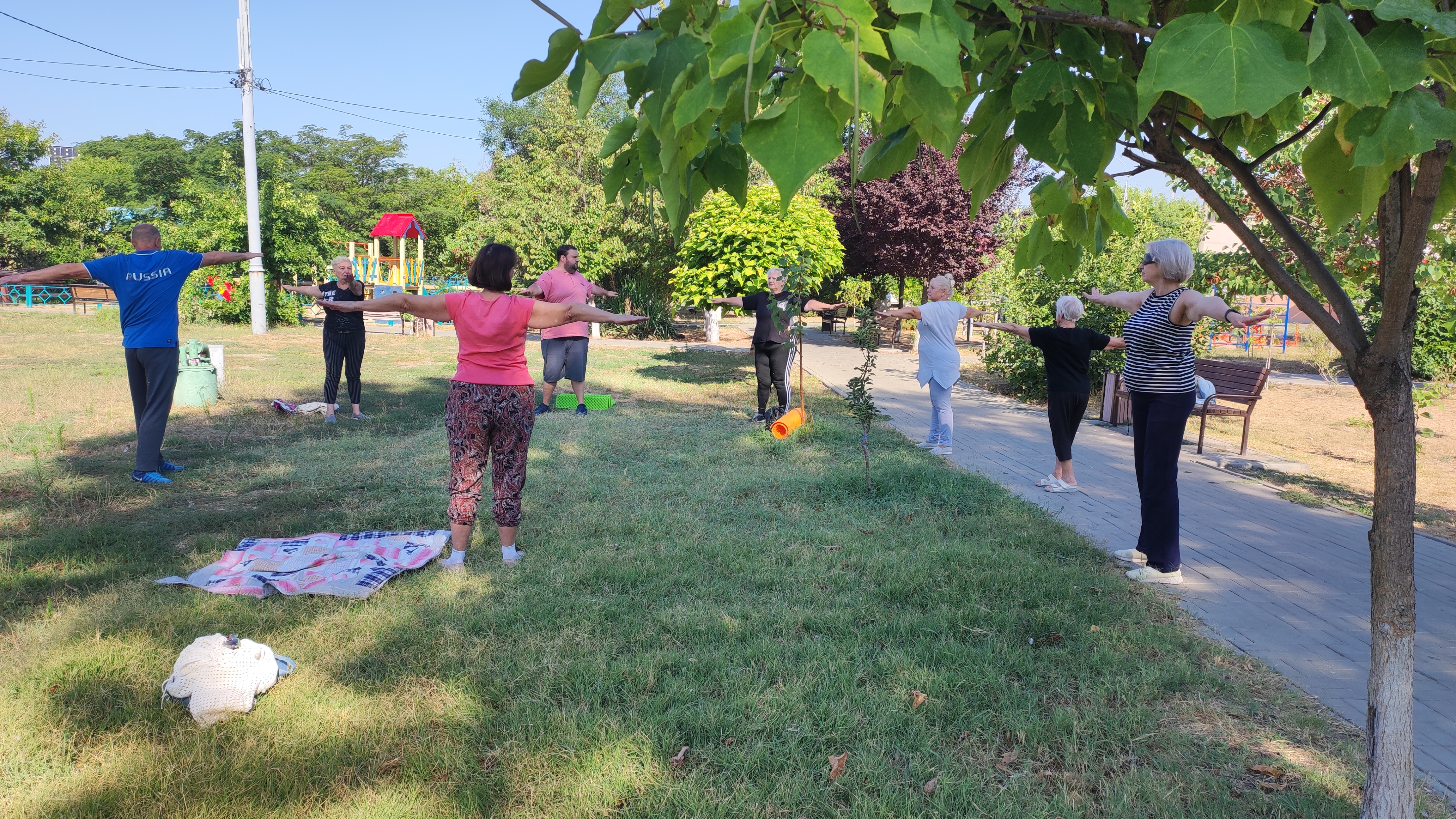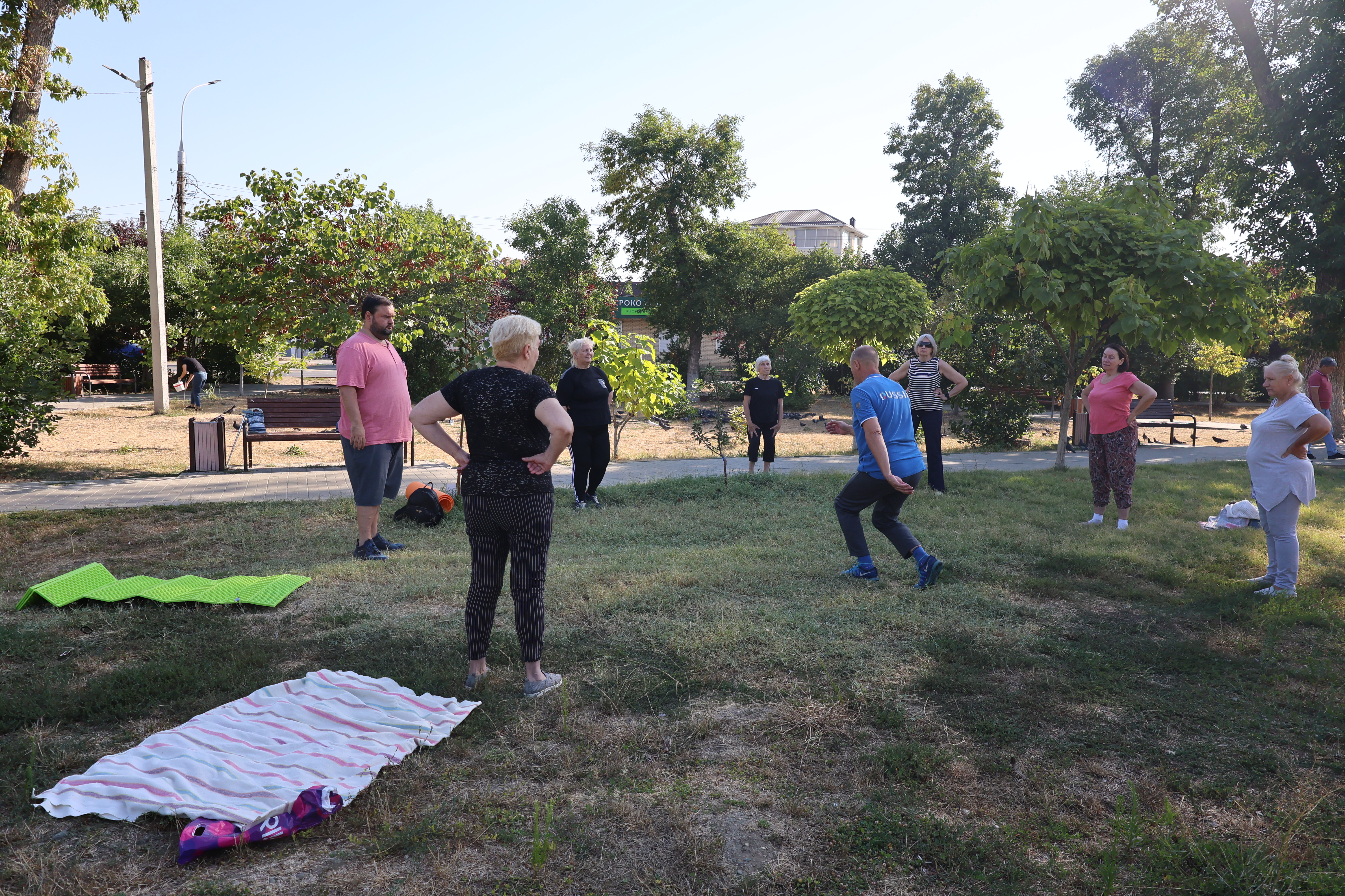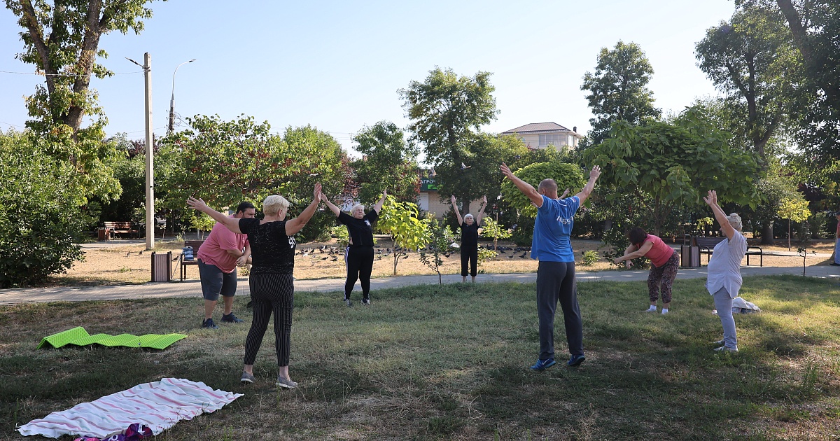 27 августа 2025Сегодня утро в Петровском сквере началось не с привычного щебета птиц, а с очередного занятия по гимнастике на свежем воздухе.