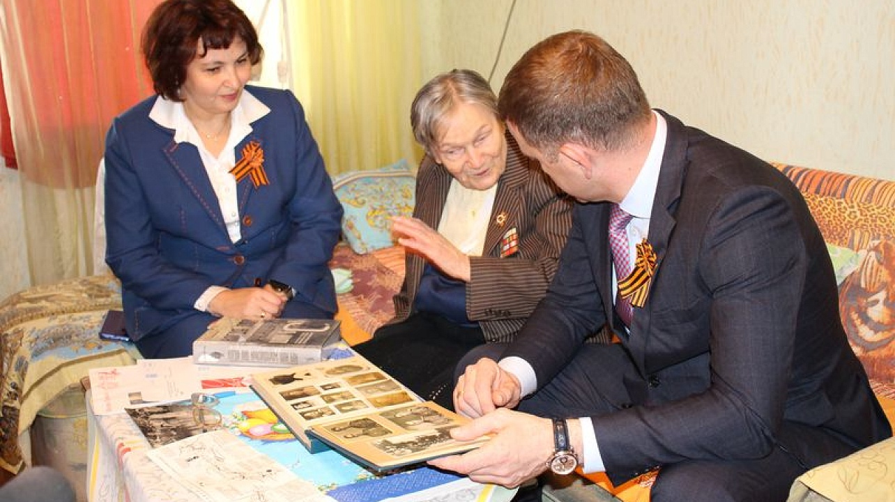 Глава Краснодара Евгений Наумов и глава администрации Центрального округа Елена Малова поздравили и участницу Сталинградской битвы Александру Николаевну Беляеву