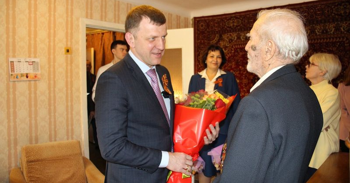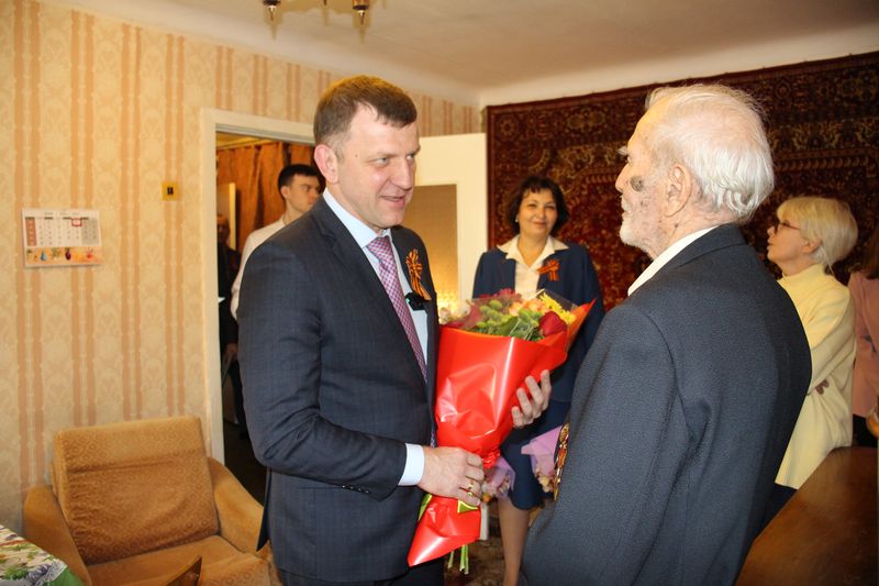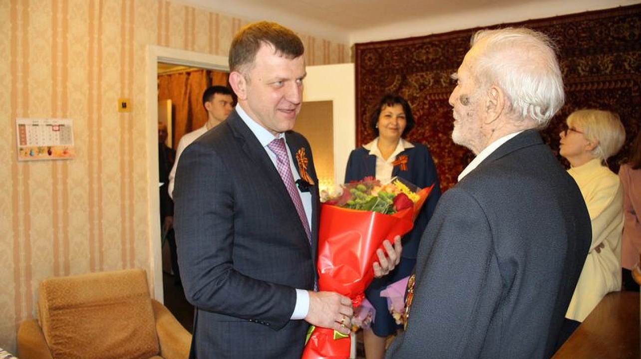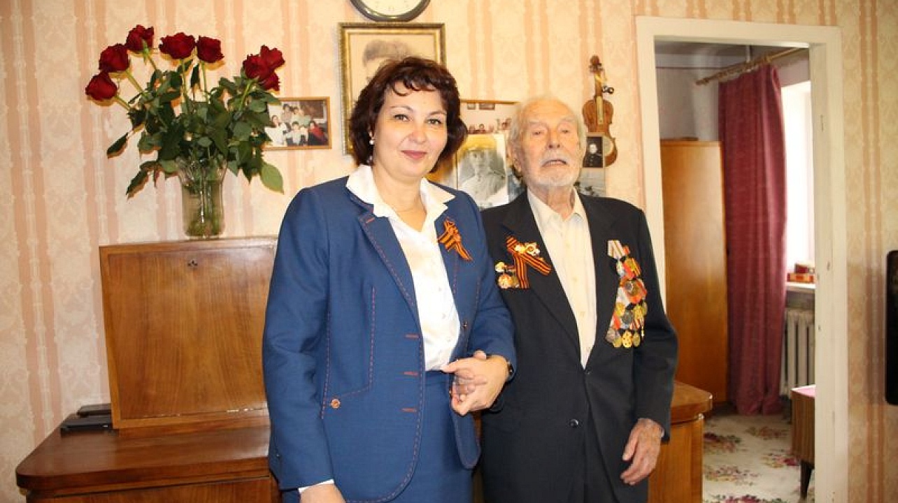 Глава Краснодара Евгений Наумов и глава администрации Центрального округа Елена Малова поздравили участника ВОВ Рогачева Александра Ивановича с наступающим Днем Победы