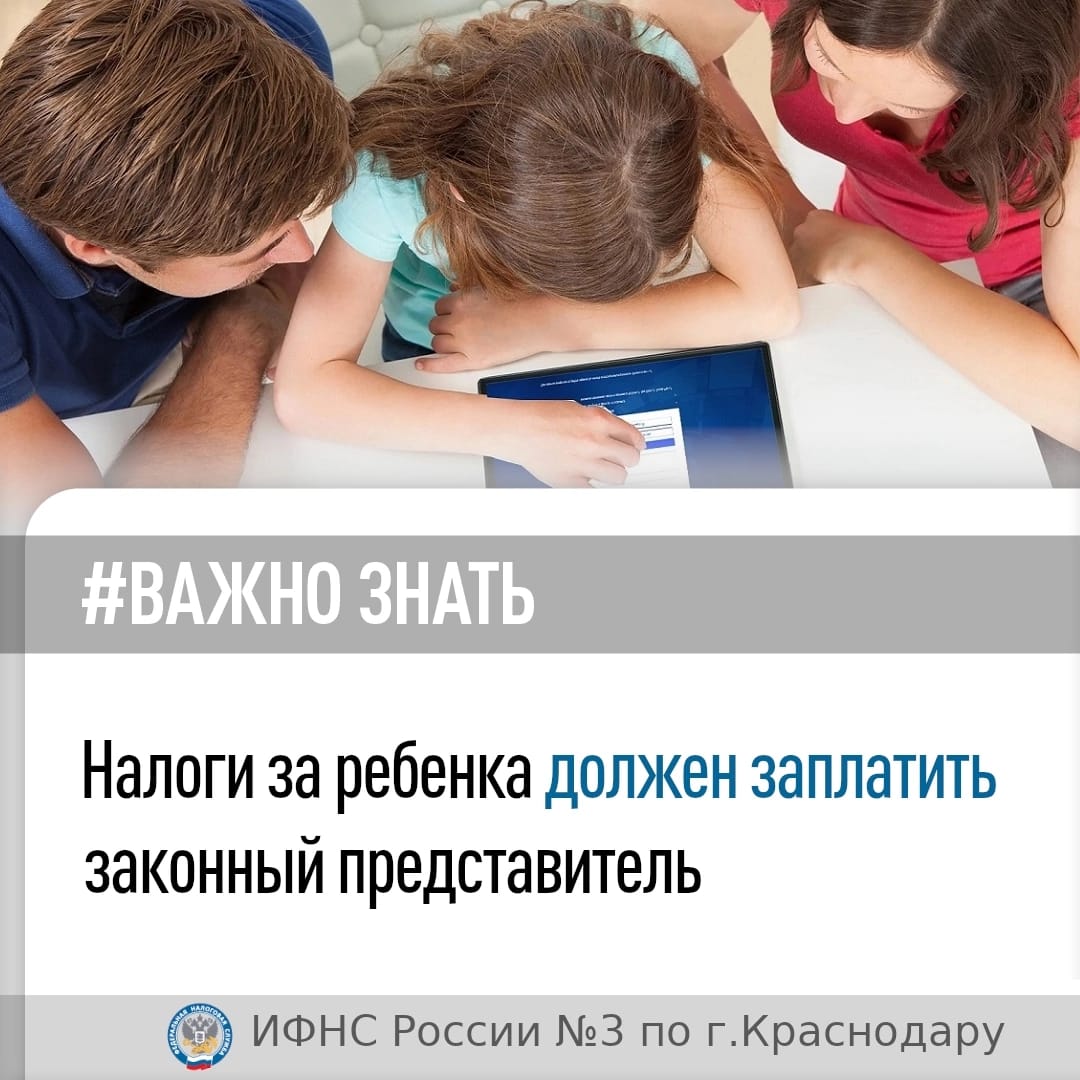 Законными представителями малолетних детей (не достигших 14 лет), а также несовершеннолетних (в возрасте от 14 до 18 лет), являются их родители, усыновители, опекуны и попечители. Они должны в положенный срок исполнить обязанность ребенка по уплате налога.