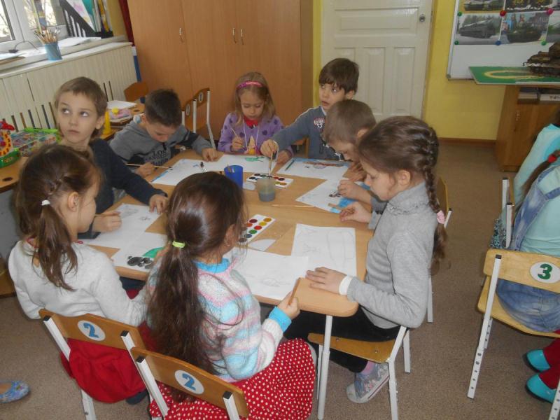 В завершение занятия дети подготовили рисунки военной техники, с которой познакомились на занятии, для оформления выставки рисунков.