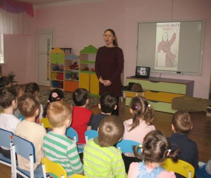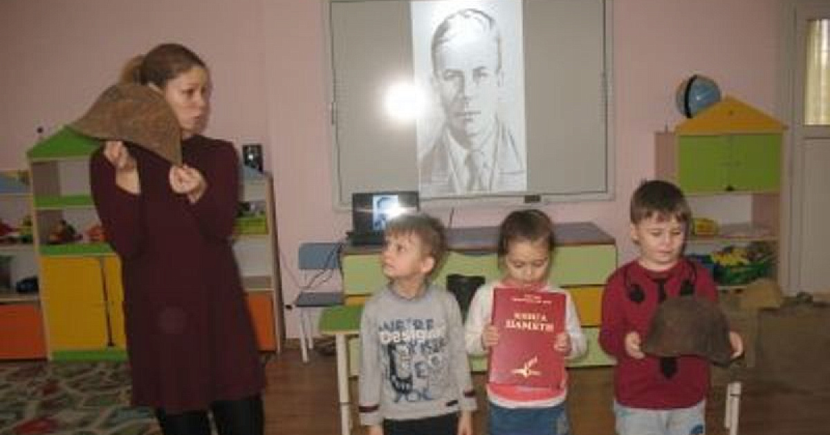 Сейчас в детском учреждении проходит выездная выставка историко-археологического музея-заповедника имени Е.Д.Фелицына. Ребята старших групп с большим интересом слушали рассказ экскурсовода о войне, смотрели фото военных лет, рассматривали экспонаты.