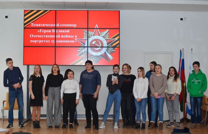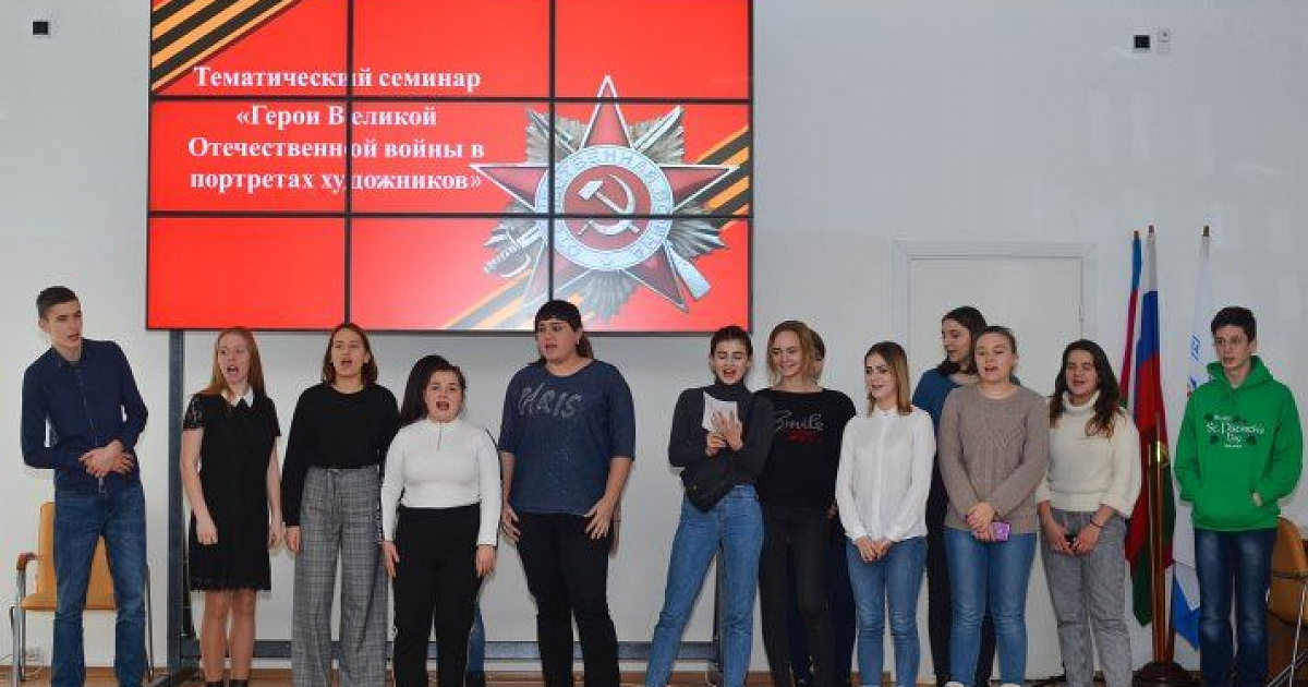 1 февраля 2019В академии ИМСИТ состоялся тематический семинар «Герои Великой Отечественной войны в портретах художников». Материал был представлен в виде презентаций и сочинений студентов, написанных под руководством преподавателей И.В.Бабаянц и Л.Н.Кравченко.