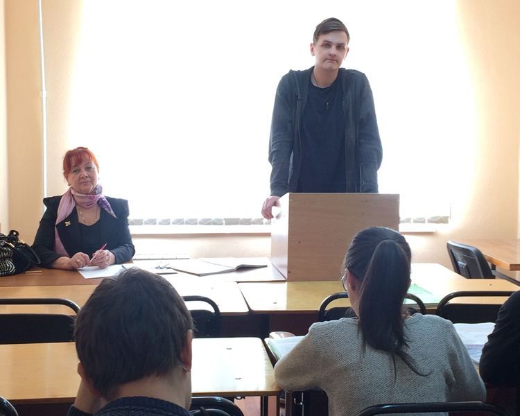 Профессор С.Г.Казарина рассказала студентам о том, как военная тема раскрыта в произведениях отечественной литературы и кинематографа. Учащиеся вуза вспоминали прозаические и стихотворные тексты писателей: Шолохова, Твардовского, Симонова, Бондарева, Быкова, Алексиевич и многих других. Говорили о фильмах «Судьба человека», «А зори здесь тихие», «Горячий снег» и «В бой идут одни старики».