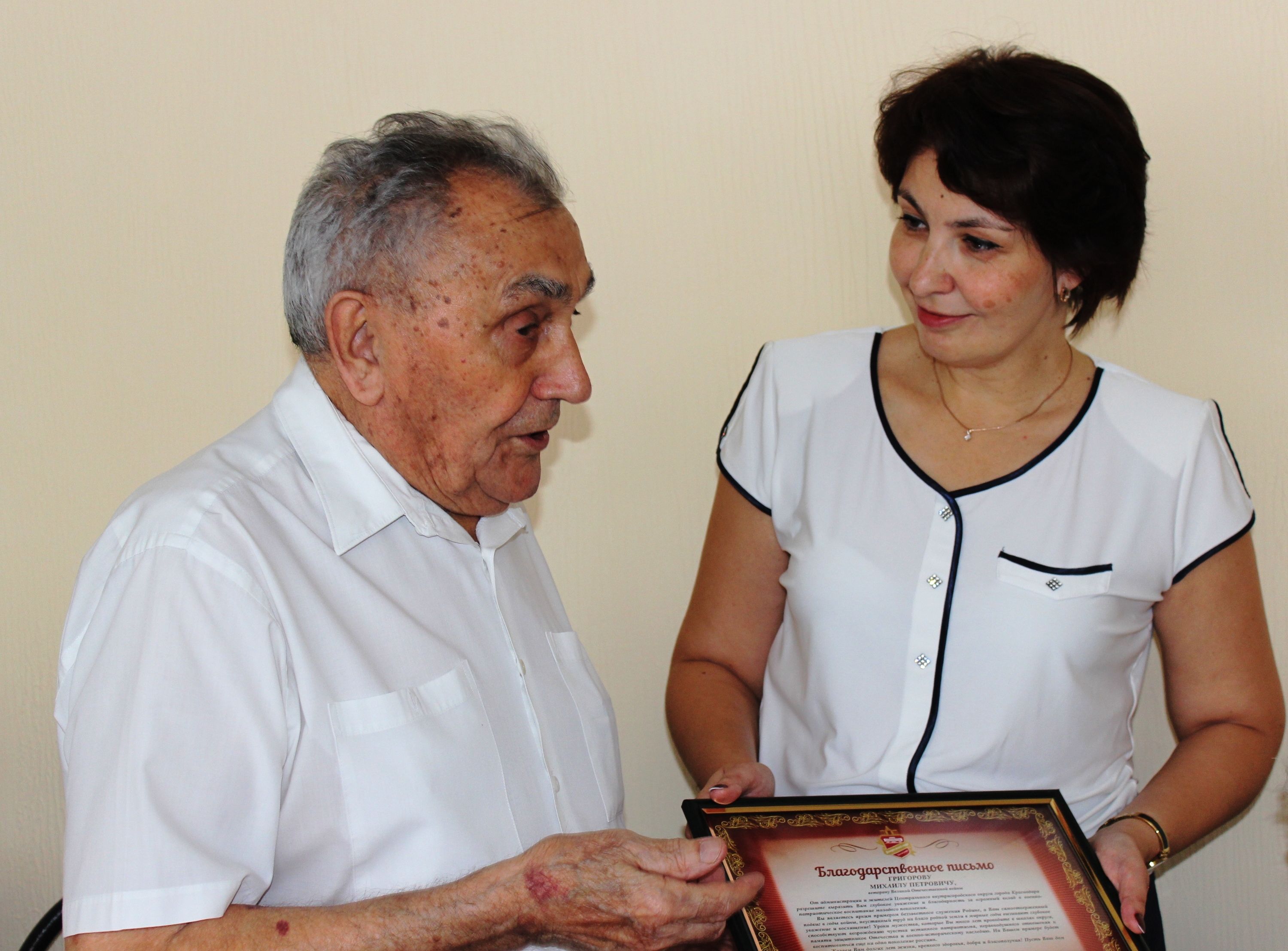 За огромный вклад в военно-патриотическое воспитание молодого поколения благодарственными письмами отметили Михаила Григорова и Анатолия Юнькова. Михаил Петрович воевал в 26-й механизированной дивизии 10 армии 2-го Прибалтийского фронта, на 1-м и 2-м Белорусских фронтах, участвовал в оборонительных работах под Сталинградом, прошел с боями Восточную Пруссию, Польшу, Померанию и дошел до Гамбурга. Анатолий Алексеевич в 14 лет вступил в ряды партизанского соединения, действовавшего под Ленинградом, освобождал Белорусь, дошел с боями до Праги, а победу встретил в Германии.