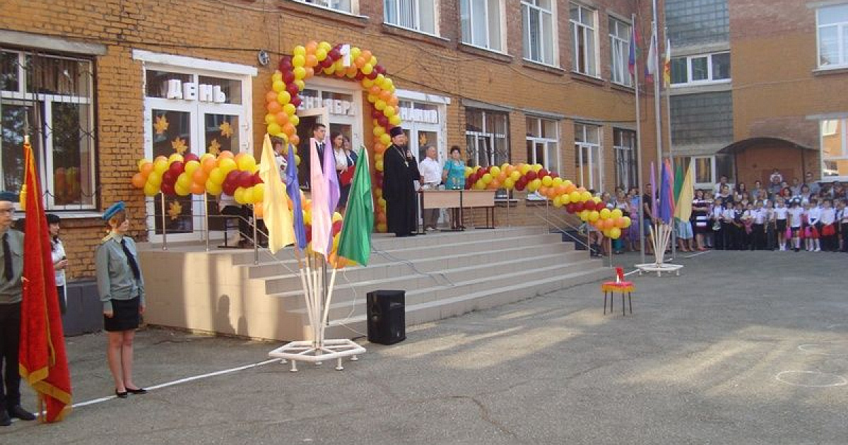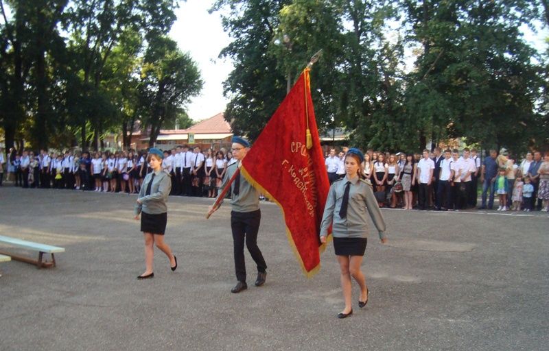 Торжественная линейка началась с выноса школьного знамени и подъема Государственного флага России. Прозвучали гимны России, Кубани и Краснодара. Все трудности грядущих школьных будней наглядно обыграли в праздничных театрально-музыкальных композициях. Для всех учащихся сегодня прошел первый в этом учебном году Урок Мира.