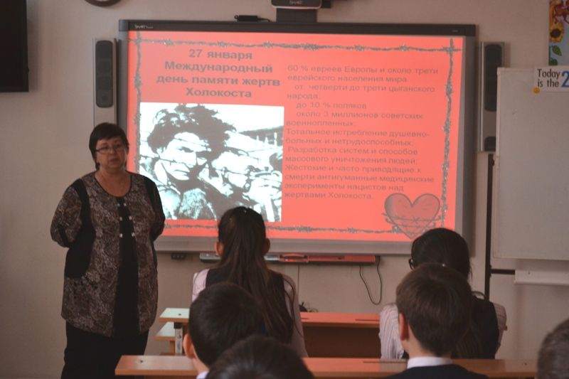 Учащиеся услышали рассказы о юных краснодарцах, которые в период Великой Отечественной войны вместе со взрослыми мужественно, с оружием в руках защищали нашу Родину и самоотверженно трудились в тылу. Особое внимание педагоги уделяли теме освобождения узников концентрационного лагеря Освенцим, который отмечается и как День памяти жертв Холокоста.