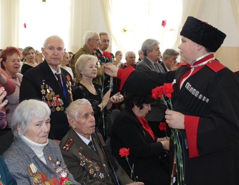 Праздник продолжили в актовом зале. Защитников Сталинграда поздравили заместитель главы администрации Центрального округа Александр Звягинцев, депутаты городской Думы Краснодара Владимир Марянян, Николай Юрин, Вячеслав Буренок и представители Совета ветеранов Тахтамукайского района.