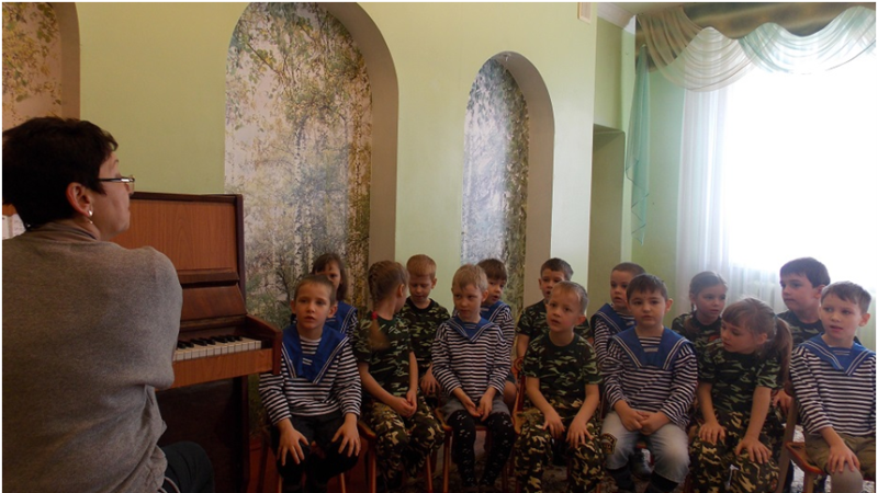 В группах проходят тематические часы, музыкальные занятия, спортивные праздники, творческие конкурсы, встречи с ветеранами ВОВ, фотовыставки «Наши защитники».