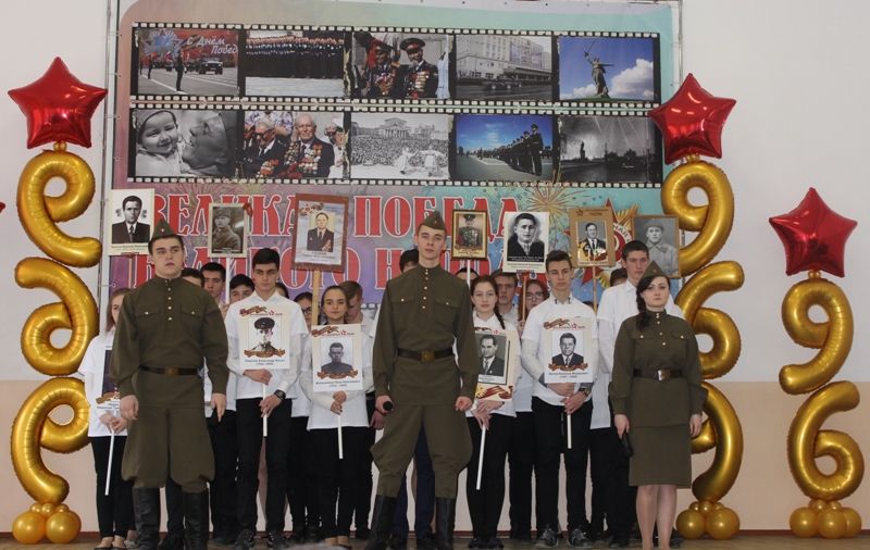 Творческие коллективы и школьники подготовили для фронтовиков литературно-музыкальную композицию, кульминацией которого стало выступление школьного Бессмертного полка. Ребята вышли на сцену с портретами погибших на полях сражений и рассказали, как погибали солдаты, защищая Родину. Память тысяч известных и безызвестных бойцов собравшиеся почтили минутой молчания.