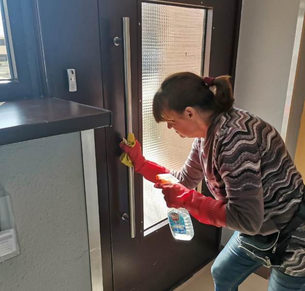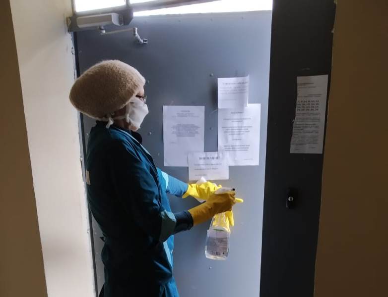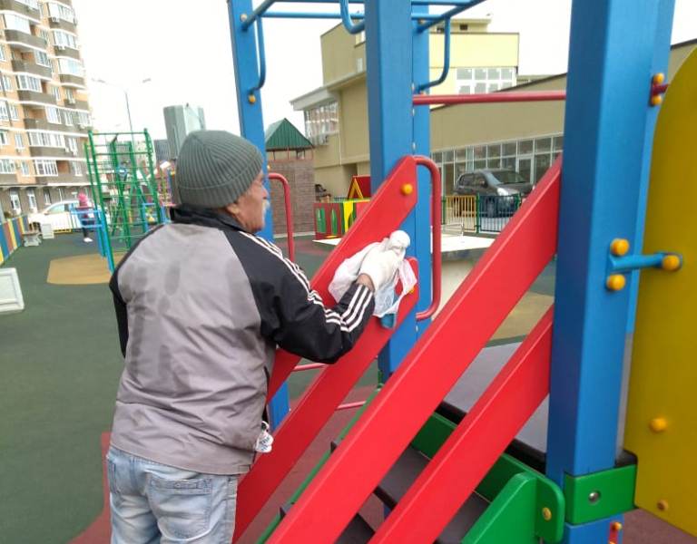 Противовирусными средствами обрабатывают контактные поверхности домофонов, почтовых ящиков, перила, панели, кнопки лифтов, дверные ручки. Санитарную обработку проводят и на придомовой территории, в частности, дезинфицируют скамейки, горки, турники и качели на детских игровых площадках.