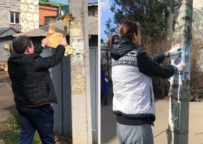 Трудовой десант трудился на 20 улицах округа, среди них улицы Длинная, Коммунаров, Ленина, Орджоникидзе, Красноармейская, Промышленная, Карасунская Набережная, Старокубанская. Муниципальные служащие очищали опоры и столбы, а также фасады и стекла от рекламных материалов, собирали бросовый мусор.