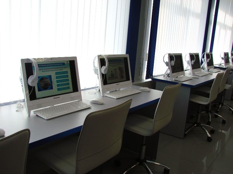 Читальный зал напоминает компьютерный класс, здесь оборудованы 20 рабочих мест для посетителей, с выходом в сеть Интернет, где можно не только почитать литературу, но и активно поучаствовать в интерактивных семинарах и вебинарах. Визит в эту библиотеку стал интересным не только для школьников, но и для педсостава. Стоит сказать, что больше половины учителей школы уже освоили методику преподавания по межпредметным технологиям и активно реализуют ее в образовательном процессе, используя ресурсы библиотечно-информационного центра.